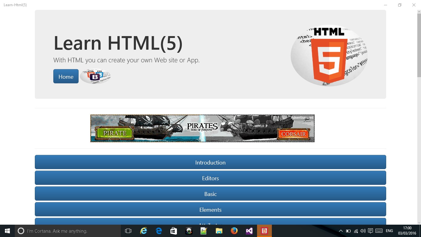 HTML5 code snippets to aid quick learning.Easy layout to find information requiredGood referenceNavigate straight to section