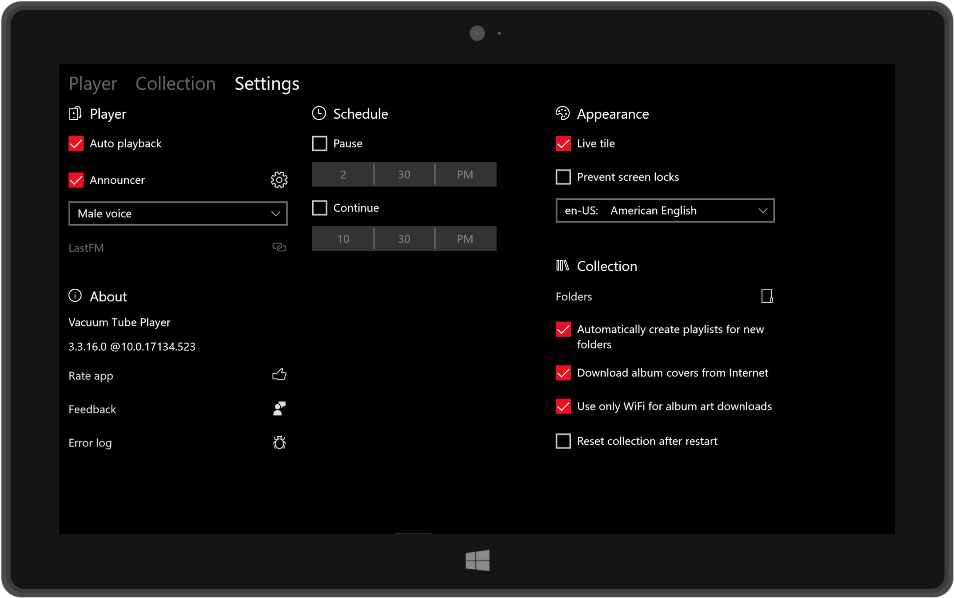 Listen to your favorite music and audio books with the completely free version of Vacuum Tube Player.