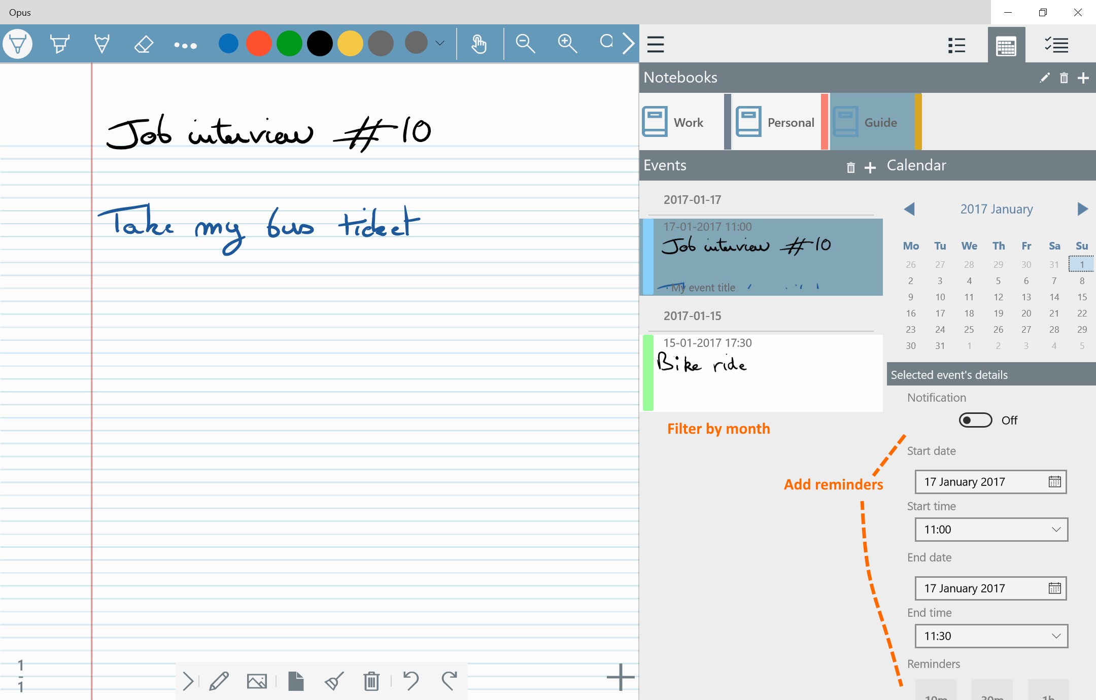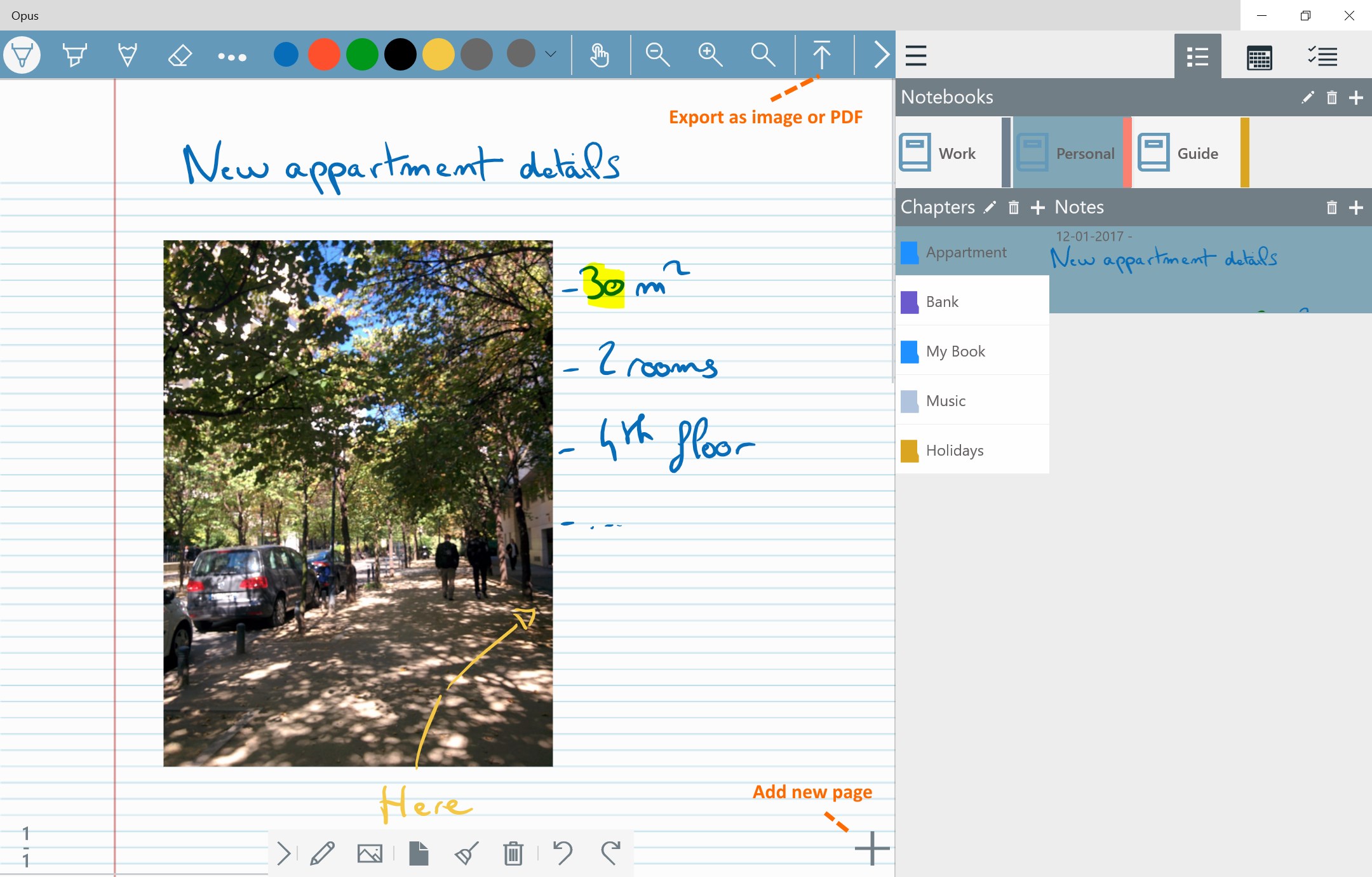 Windows Ink: inking, handwriting, drawing with pen or fingerNotes, Note taking, notebook Pen writting, Note taking, Windows ink, inkingNotebook, Calendar, TodoList, Sketch, organizerCopy, paste, select move inkImport and export ink as image (PNG, GIF, JPEG...) or PDF filePlan events, organize eventsManage todolist, taskChange paper type : square paper, lines...