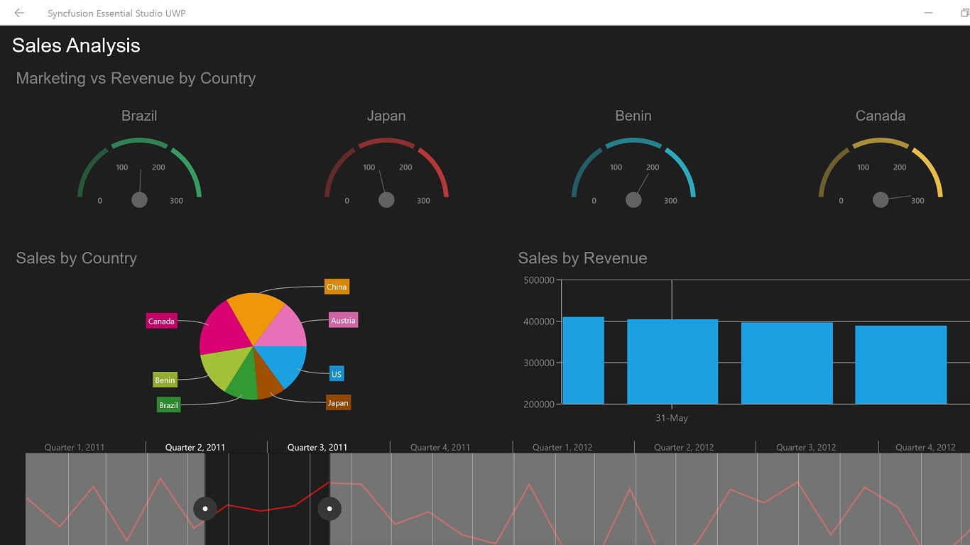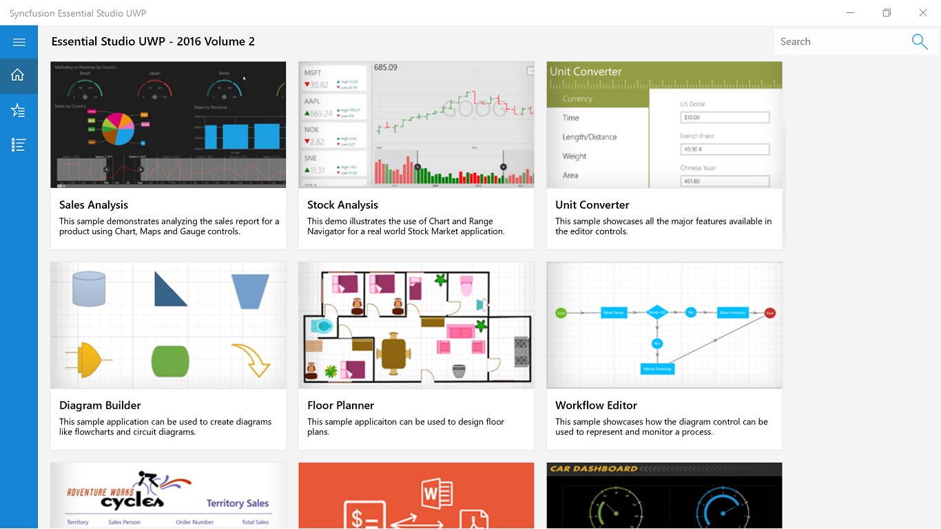 This application showcases the capabilities of all the controls available in Syncfusion Essential Studio for UWP. Essential Studio is the most comprehensive control toolkit available in the market for building line-of-business windows store applications. All the controls have been optimized for performance and touch interactivity.