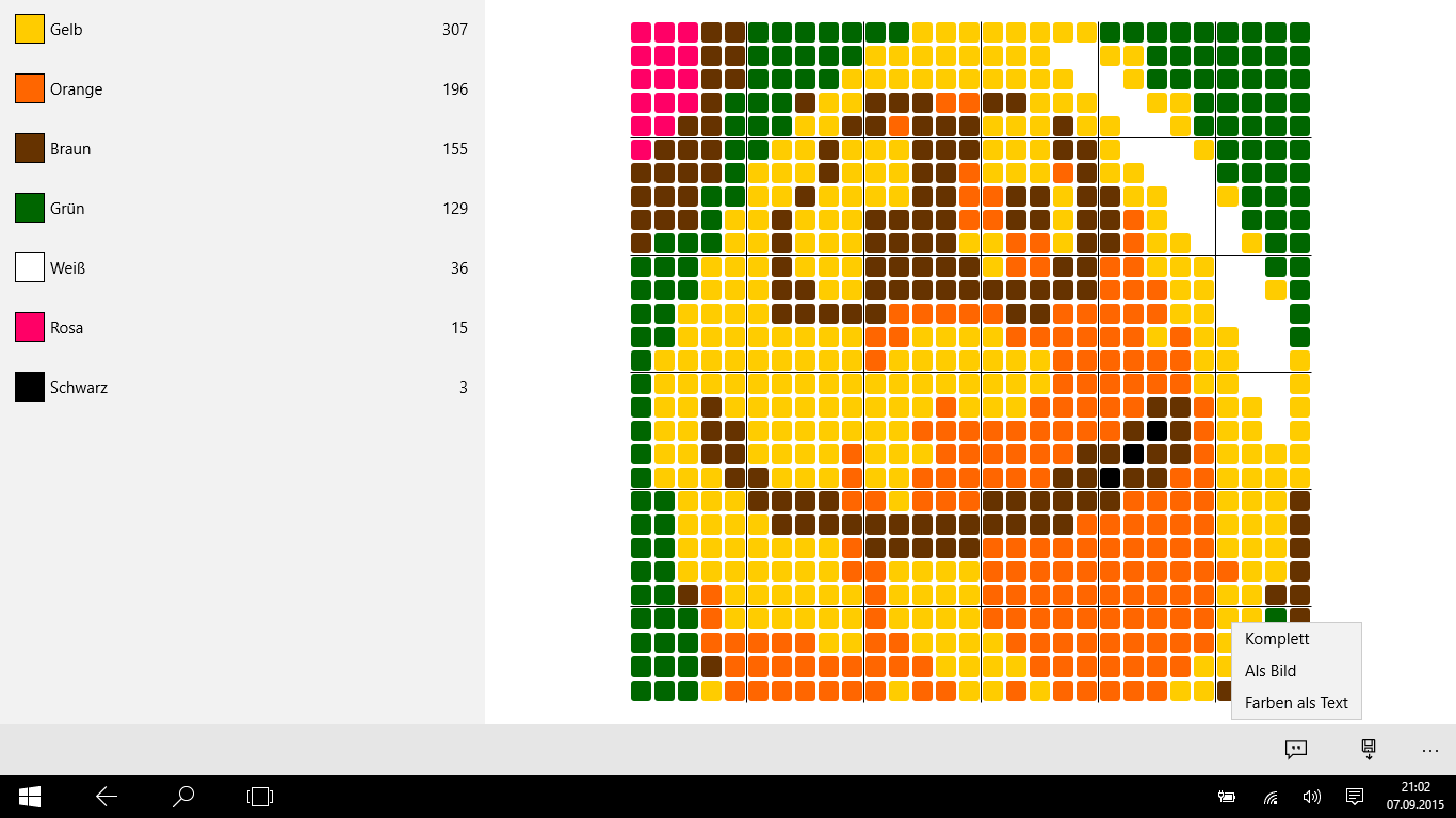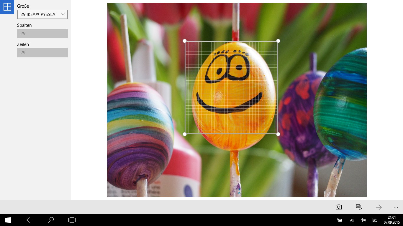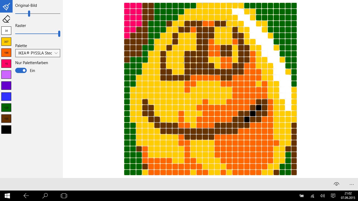 Create patterns for pearls or cross stitch from every picture or photo and share it with friends. Easily create patterns for cross stitch or other hand work.
