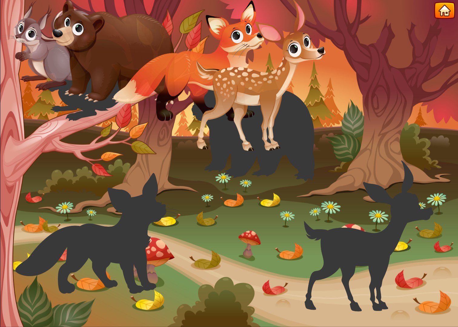 A fun animal puzzle game for younger children! Drag animals to their correct shapes and watch the animals celebrate when the puzzle is complete! The game includes nine beautiful painted scenes with a lot of different animals!