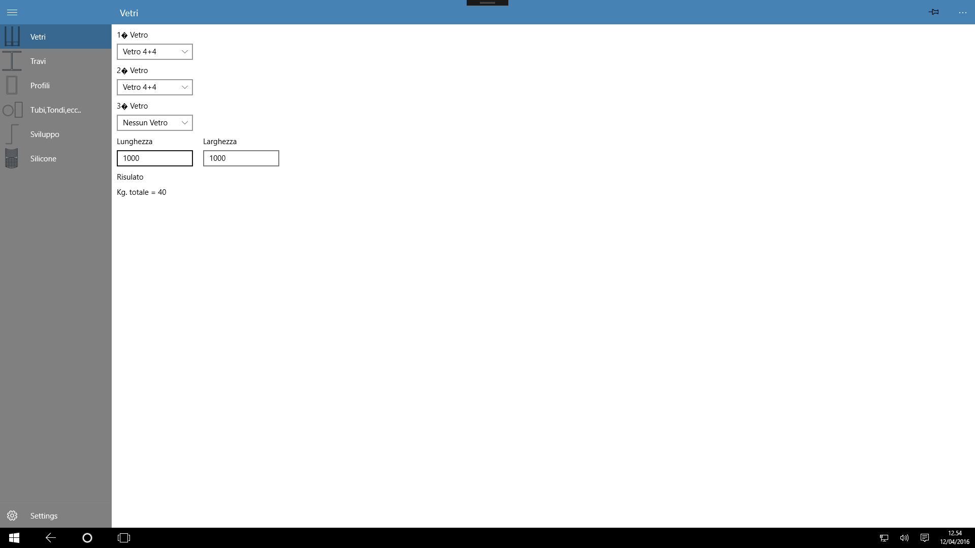 Calcolo del peso di vetri isolanti e stratificati
