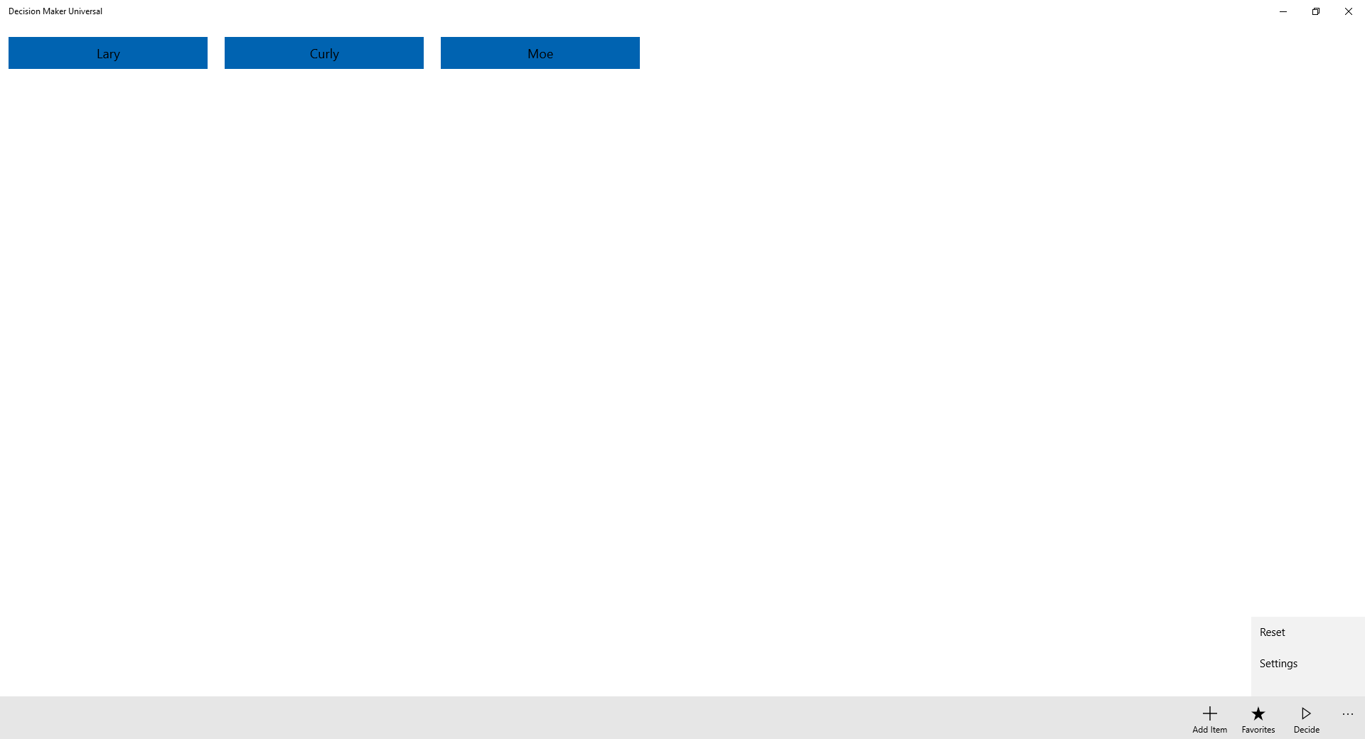 Decides from a list of itemsSet the item names and number of itemsSave favorite lists of itemsAdjust how fast decisions are made