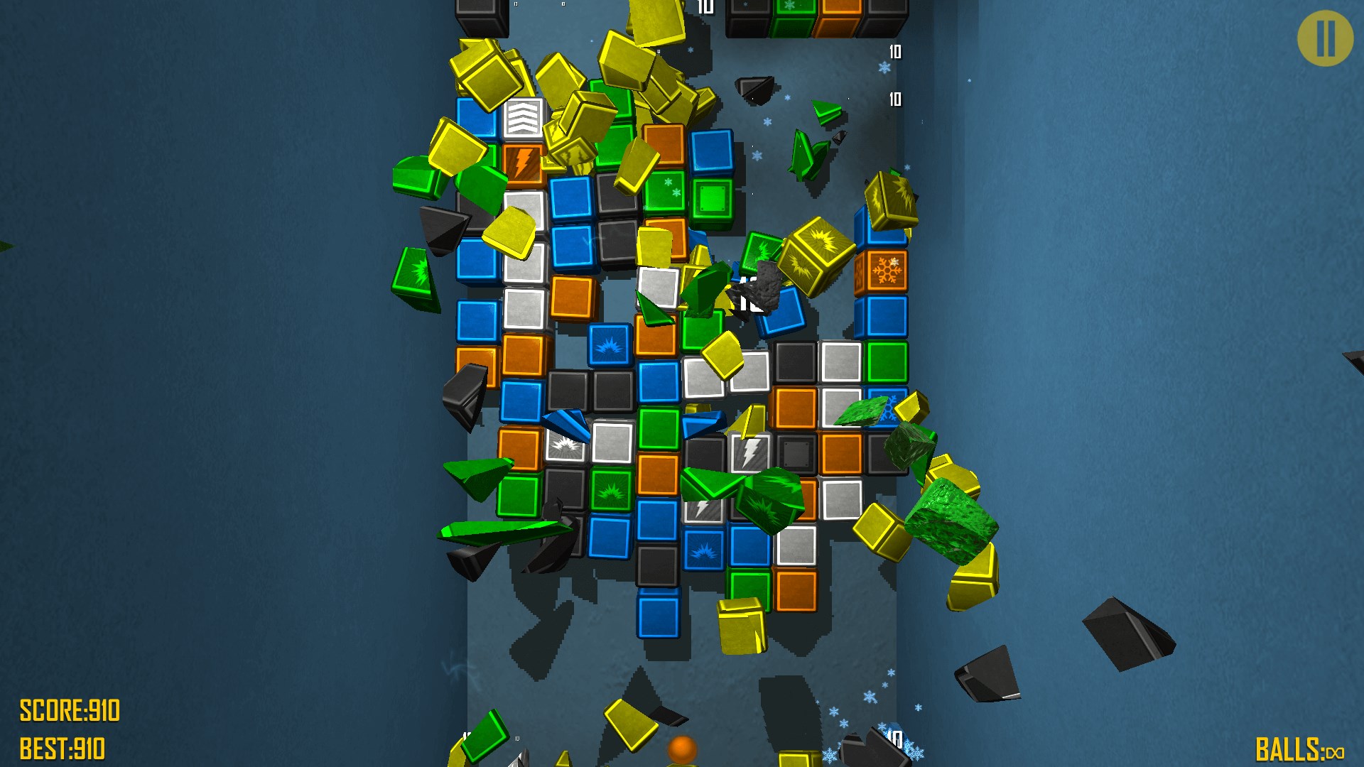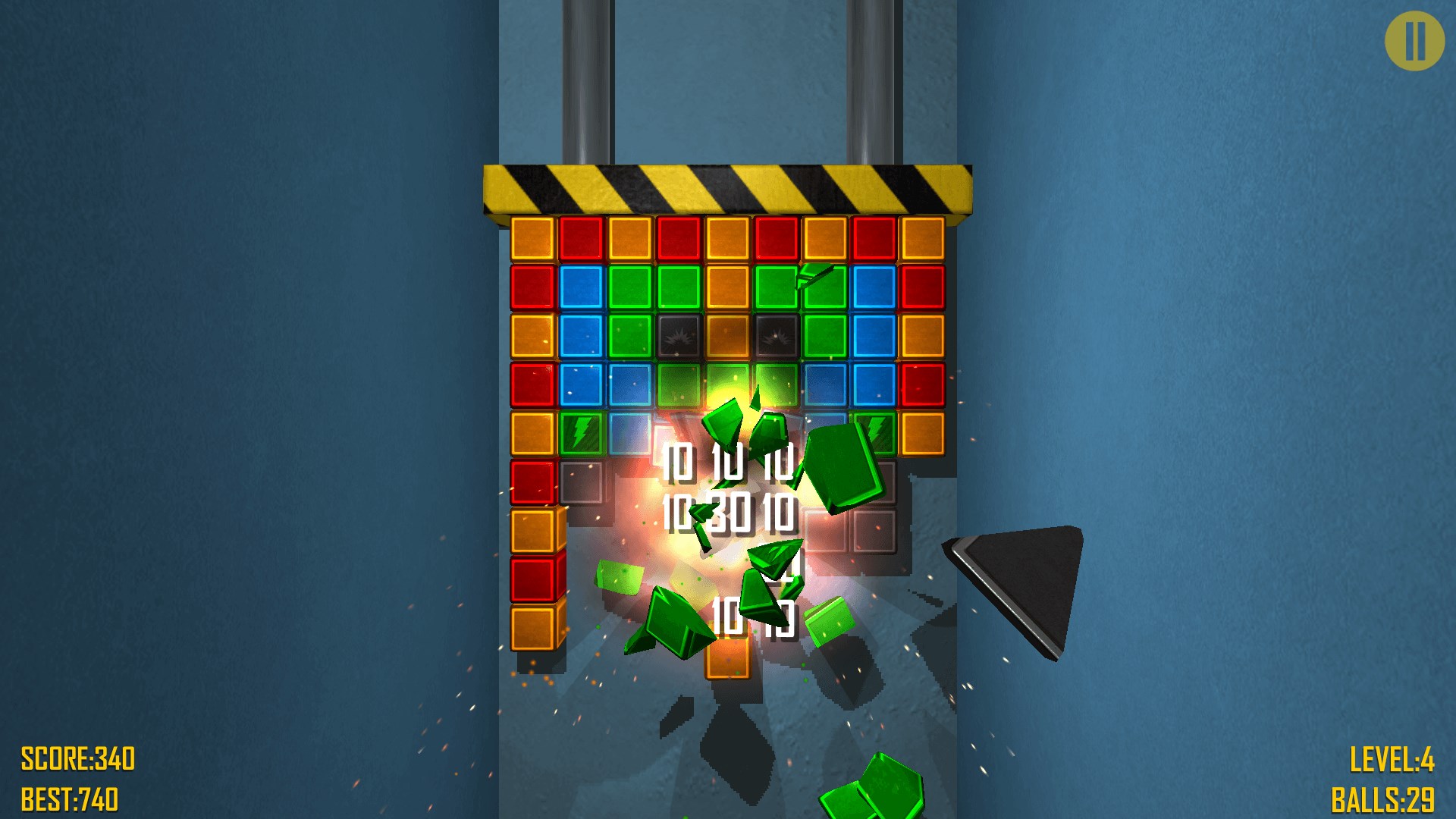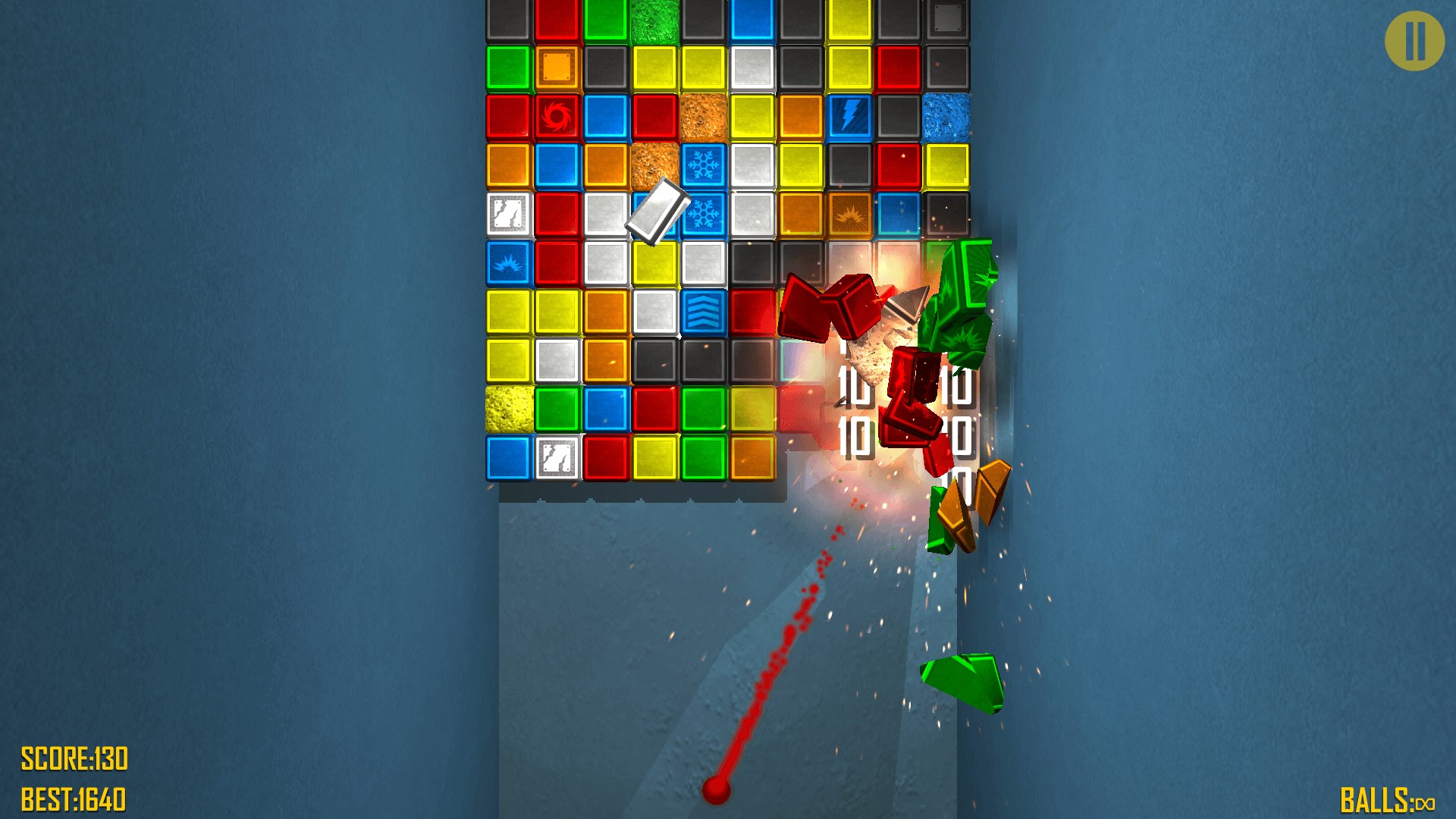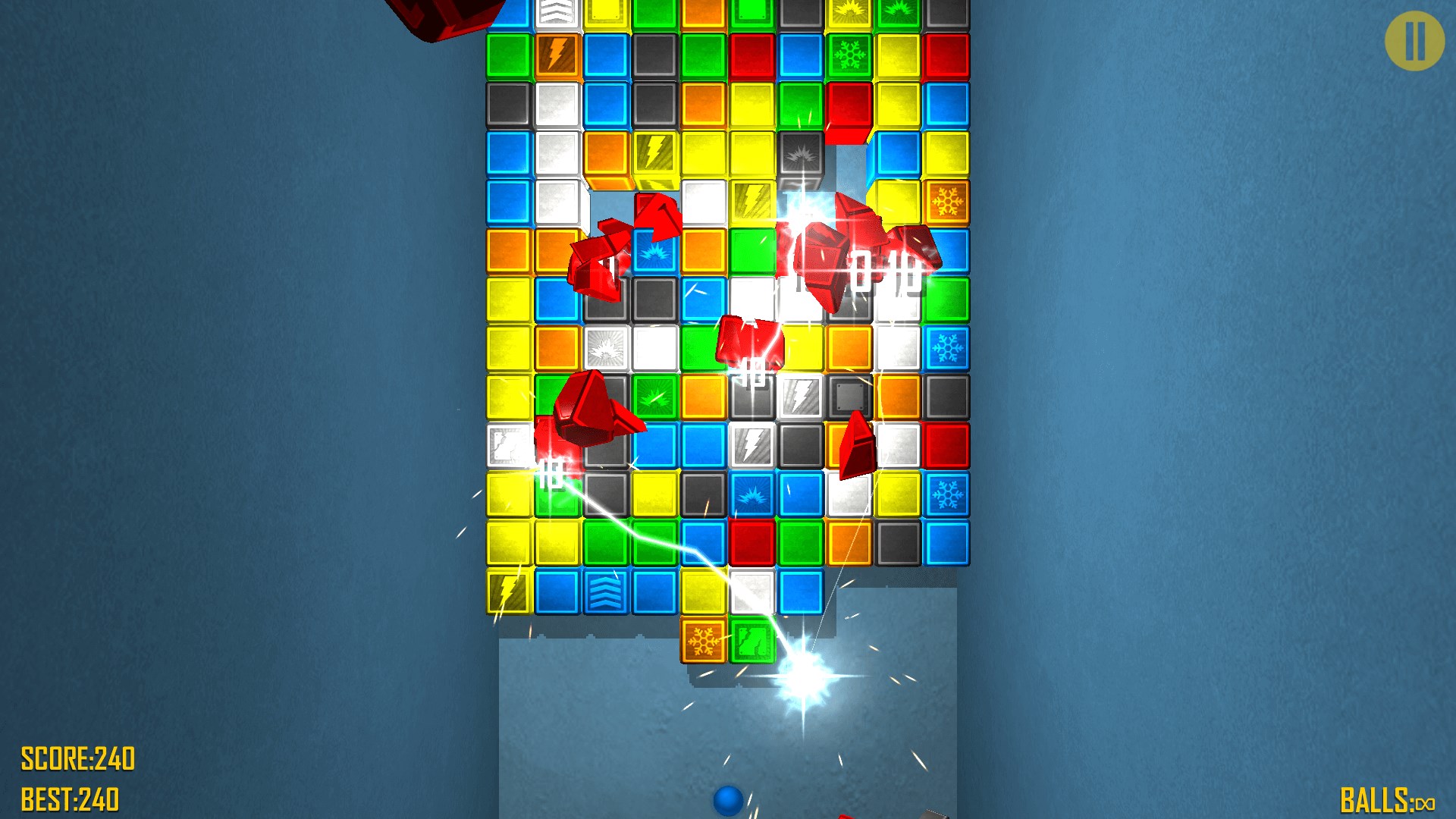 Your goal is to clear all bricks from the board, scoring as many points as possible. You must shoot at them with balls of same color. Point your finger to where you want the next balls to go.