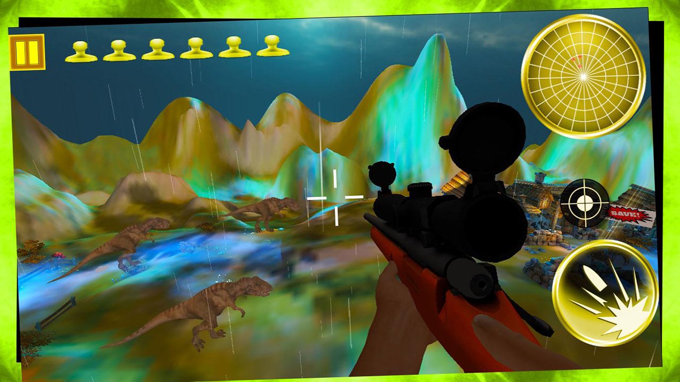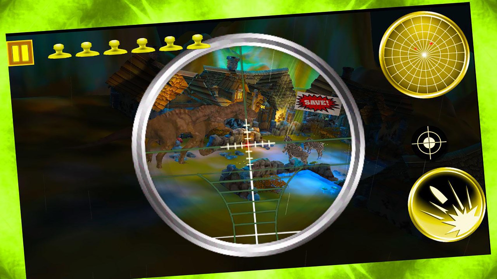 Dino Hunter 2016 brings you an exhilarating action-packed, 3D FPS (First Person Shooter) adventure game in a fantasy environment. You are a dino slayer and having a sniper took position in a safe place to protect wild animals. In this game you will face blood thirsty, deadly dinosaurs searching for their prey, attacking animals in the zoo. Be the slayer of dinosaurs to protect the animals. You are on top of a mountain and your every accurate kill shot brings the animals closer to life.