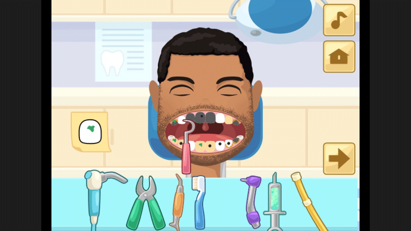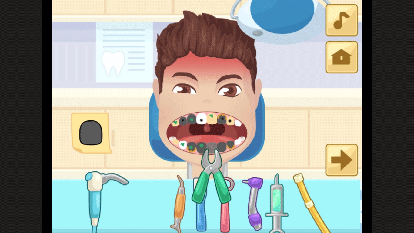 You use the tools of a real dentist. You must follow a strict order of things in order to heal your patient. His life, or rather his teeth, are in your hands. Your turn to play!