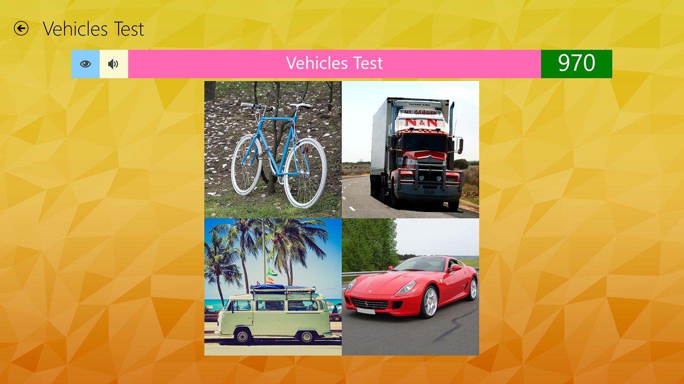 40 Assorted Categories700+ Words with HD PhotosLearn and Test for Each CategoryA Picture DictionaryChange Voice AccentChange Voice Speed