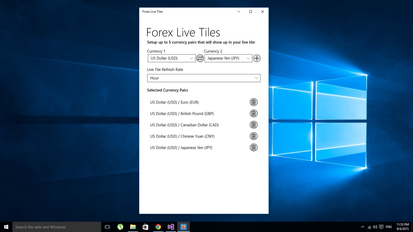 After you select your currency pairs, the tile will be automatically updated from the generic app icon, to the pairs you selected.