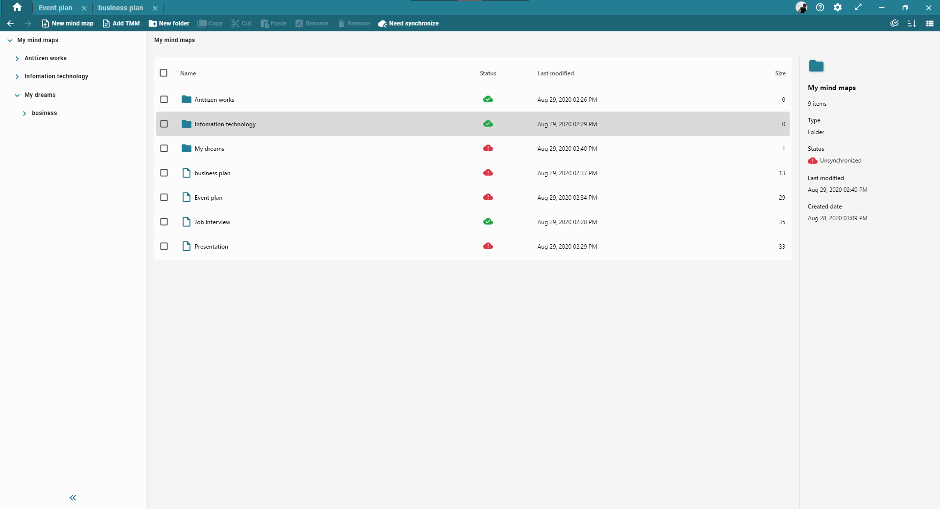 + Manage mind maps by Treeview