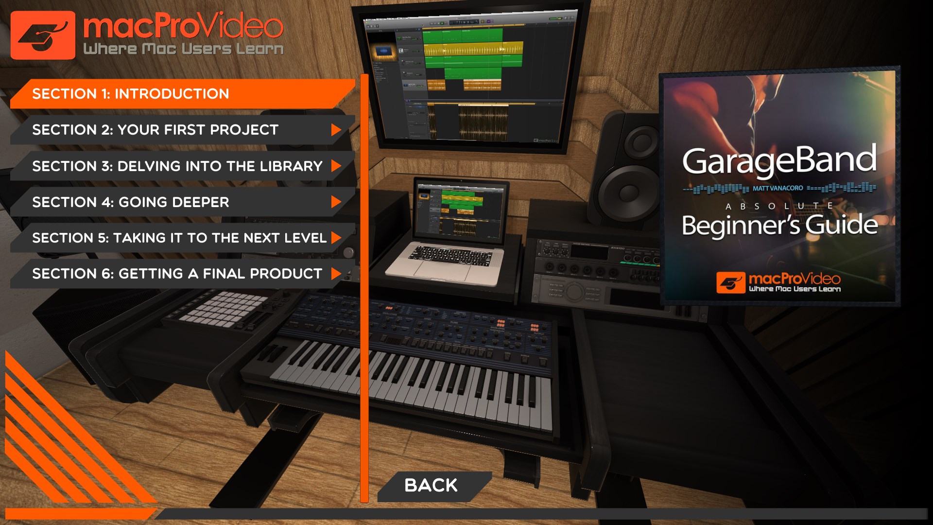 Featuring our industry specialist trainer, Matt Vanacoro!This course on GarageBand will show you everything you need to know!With 39 videos, and 1 hour and 54 minutes of valuable reference material!Including a fully interactive interface!So if you\'re looking to learn Beiginners Guide For GarageBand, look no further...This macProVideo course is the best and fastest way to learn it!