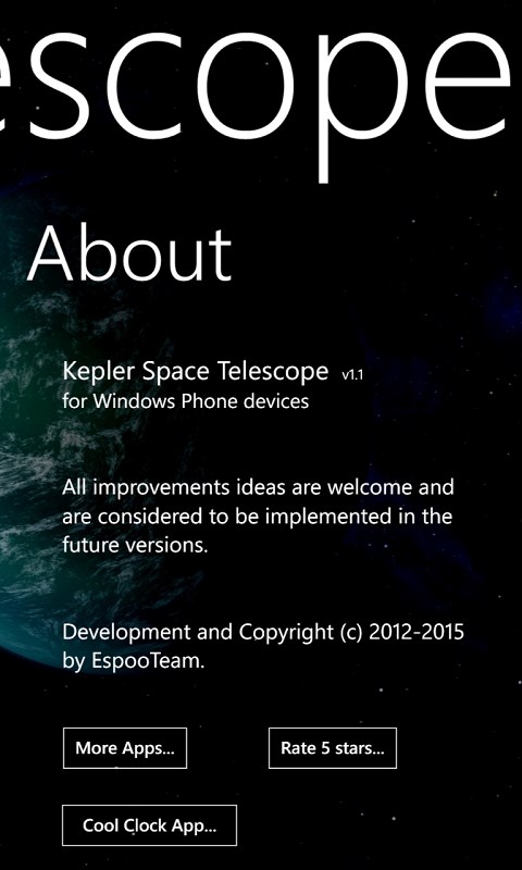Kepler Space Telescope application for Windows Phone devices.