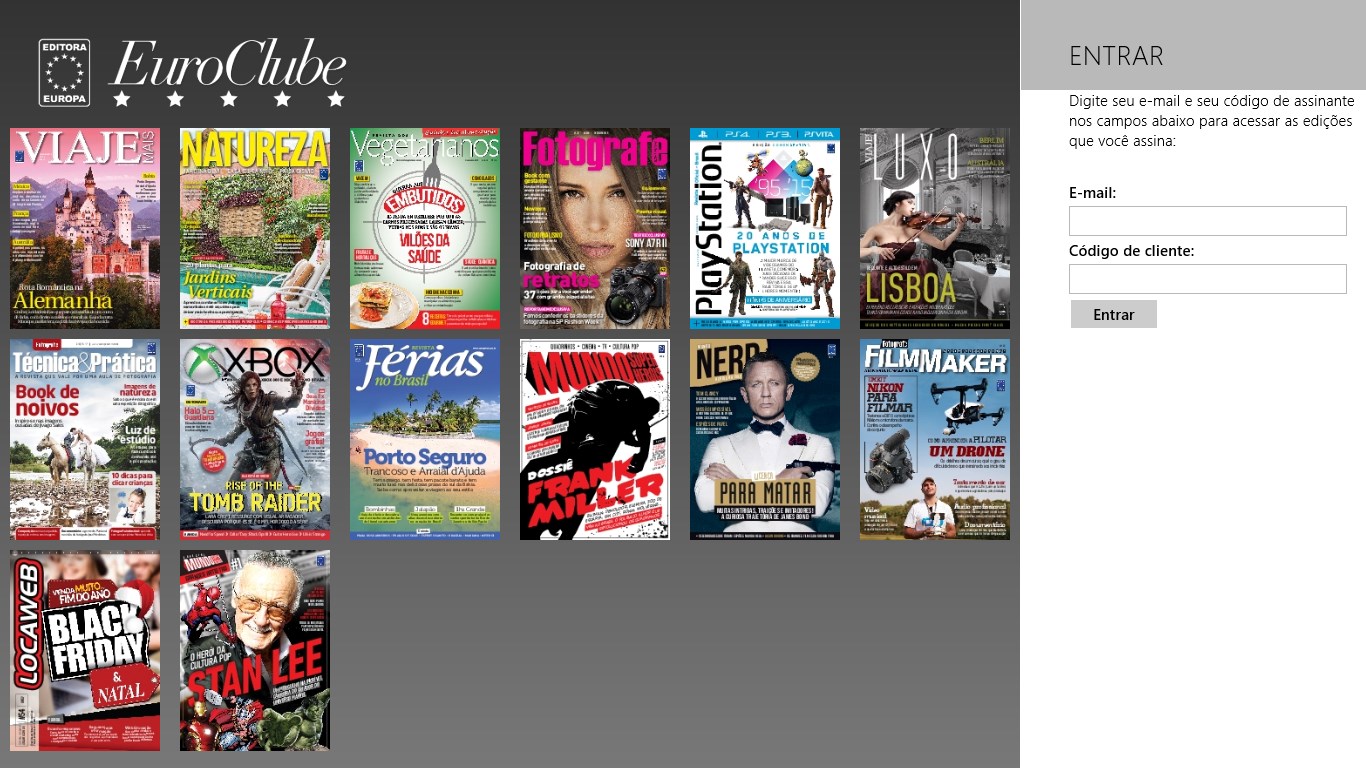 Se você for assinante da Editora Europa, leia as revistas que tem direito em seu desktop ou Windows PhoneFaça o download das revistas que deseja ler.Aplicativo intuitivo e fácil de usar.