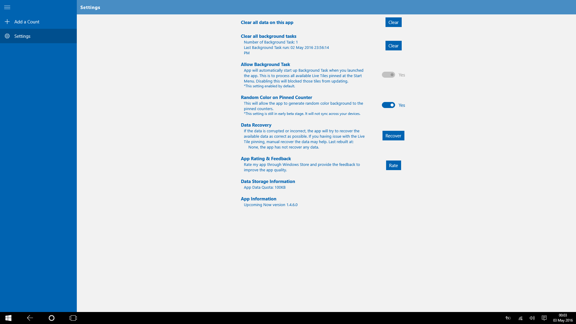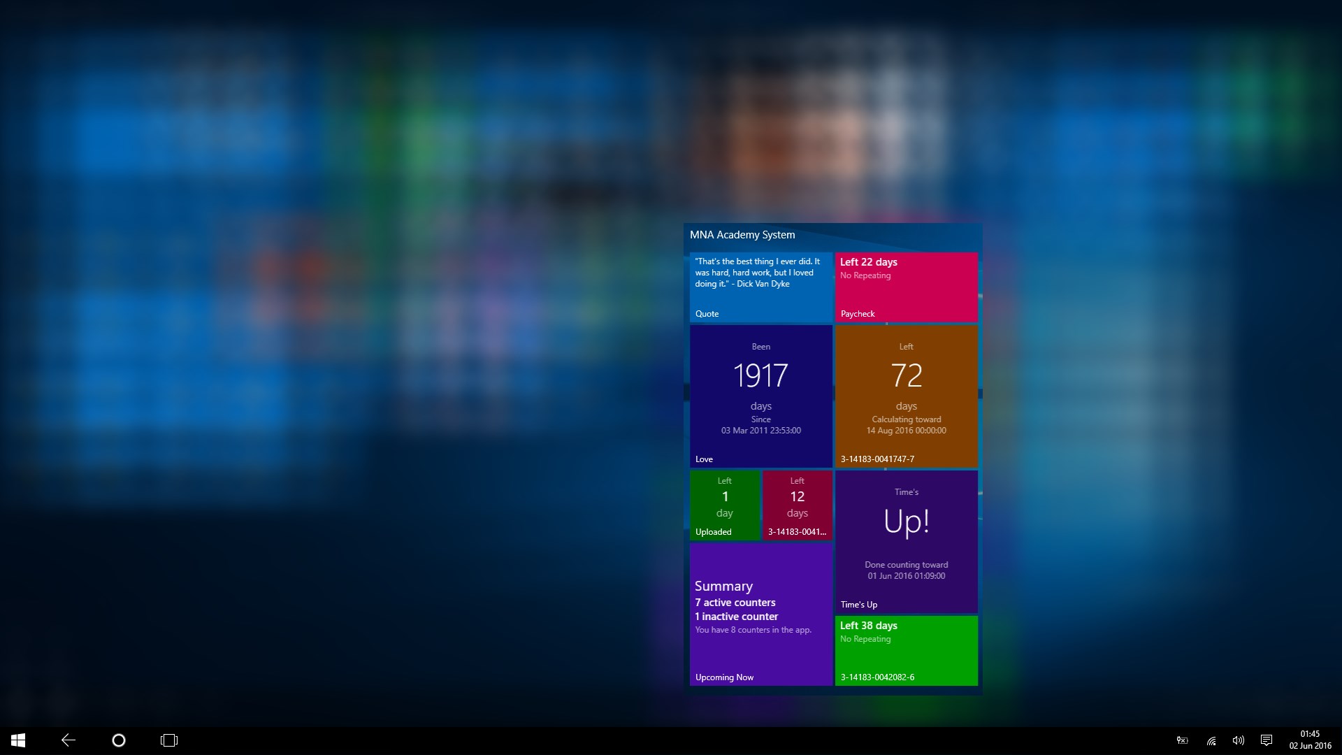 Free date/time counterPin colorful Live Tile for each counterSync app data across Windows 10 devices