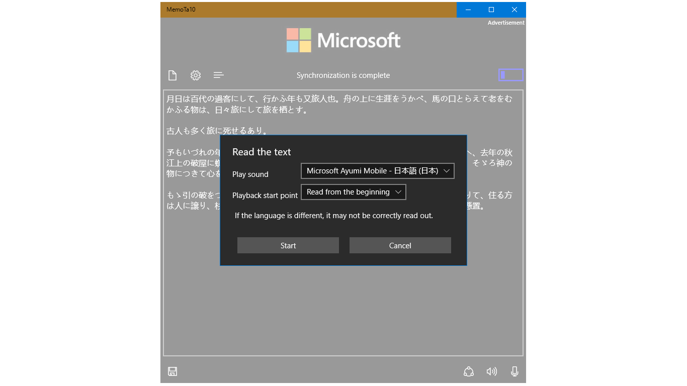 Auto-save textAutomatic synchronization of text data between terminalsThe memo display on live tileSaving to a local diskShare of textVoice input of textReading of the text