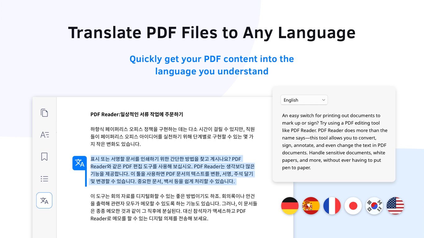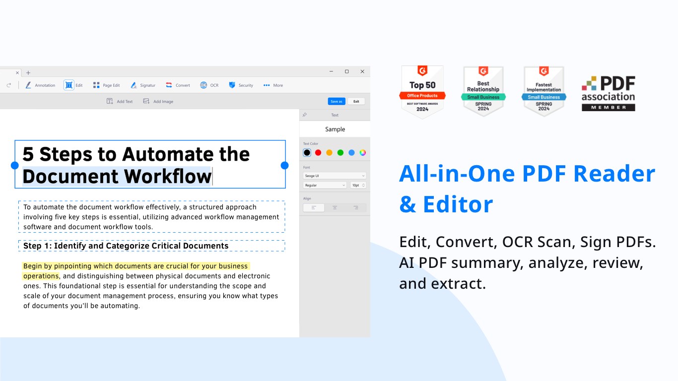 KDAN PDF Reader is your intelligent PDF editor, reader, and document assistant. Edit, sign, convert, annotate, form-fill on PDF documents. With innovative AI features, save valuable time and boost productivity! Available on Windows PC, iOS, Android, and Mac, millions of users trust KDAN PDF Reader for a comprehensive and efficient PDF experience.