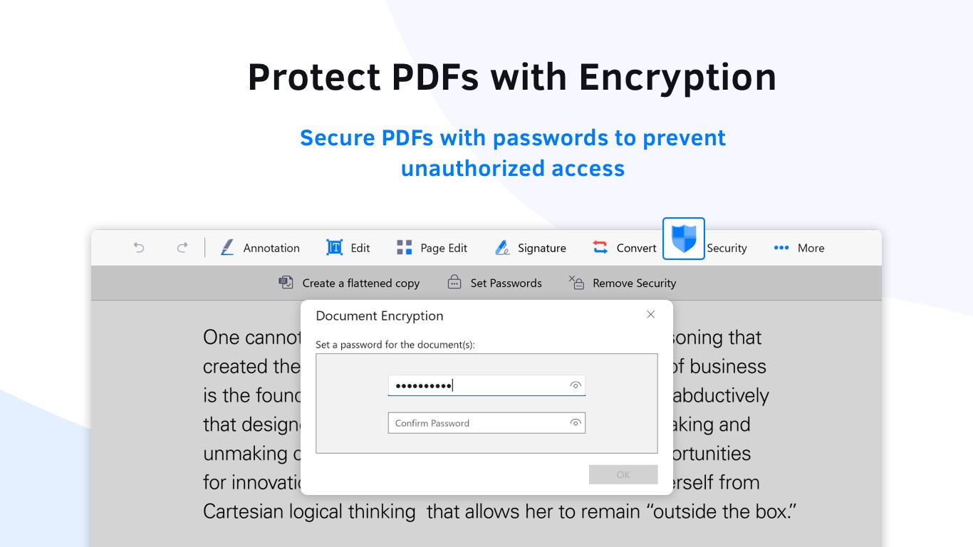 Set a permission password to control who can open, copy, or print your documents.