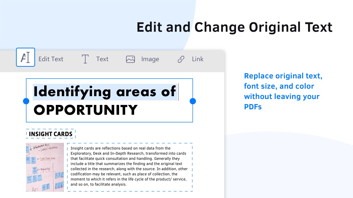 • Replace, edit, add, or delete text directly in PDFs