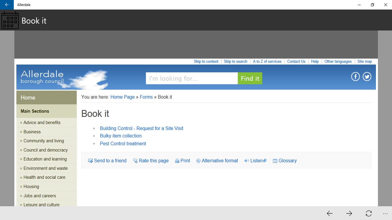 · Make bookings e.g. a bulky collection or a building control inspection