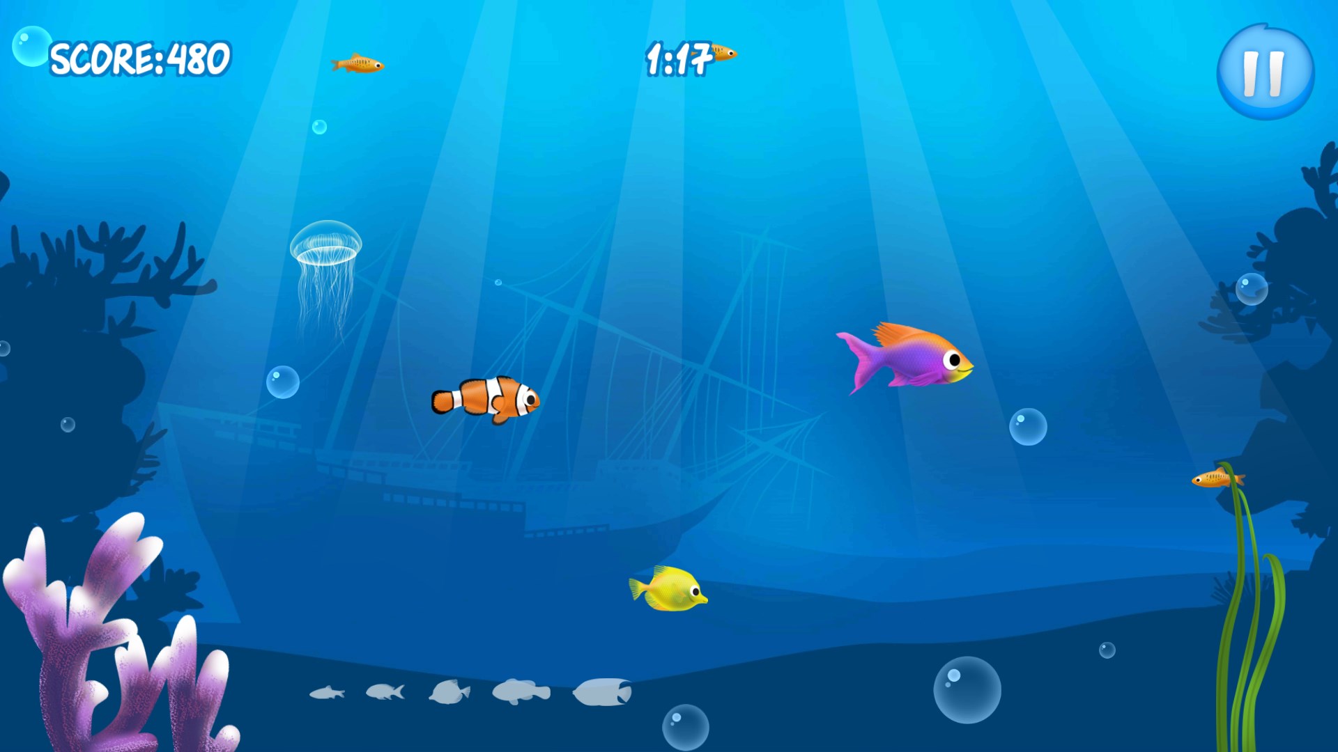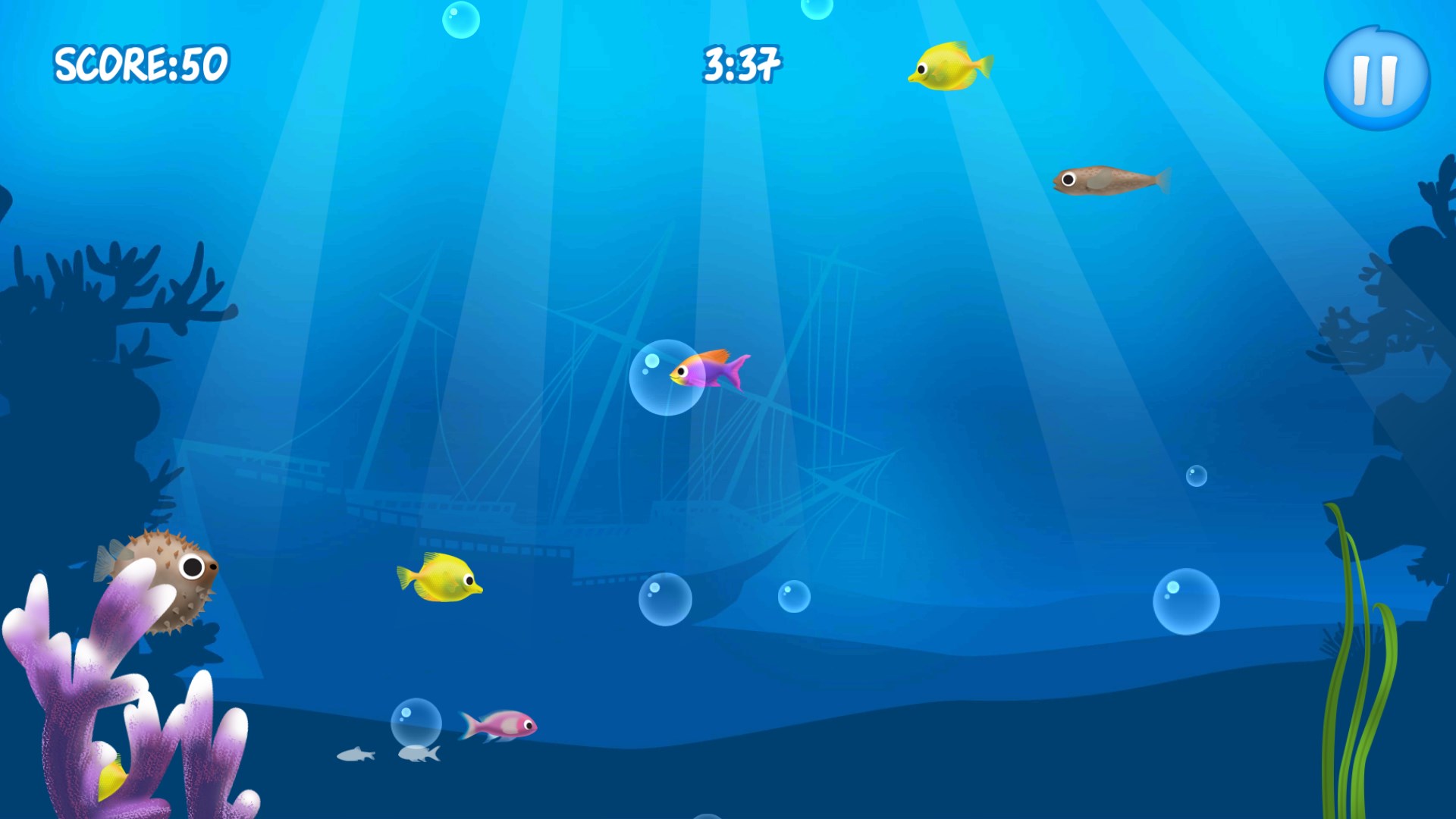 20 different levelsamazing high quality graphicsmany spieces of fishaddictive gameplay