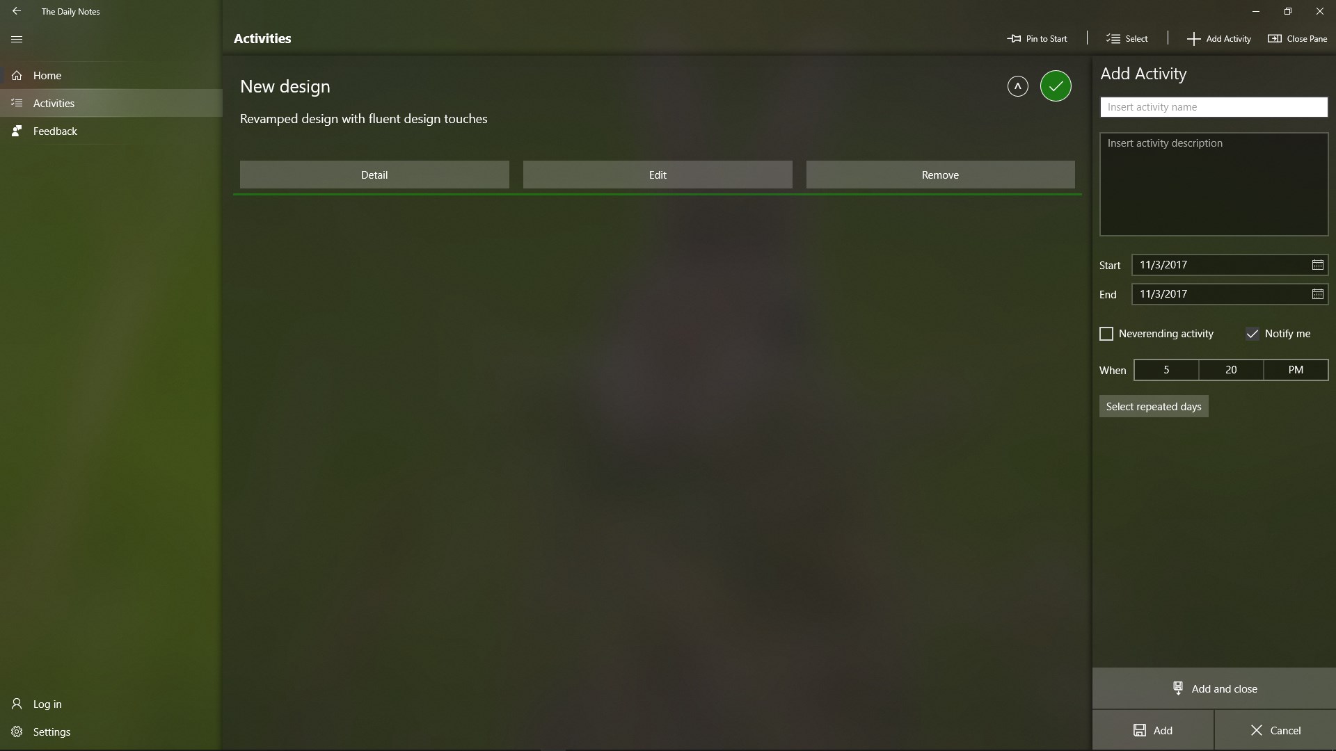 Daily reminderActivity trackerLive tileResponsive designFluent designNote taker