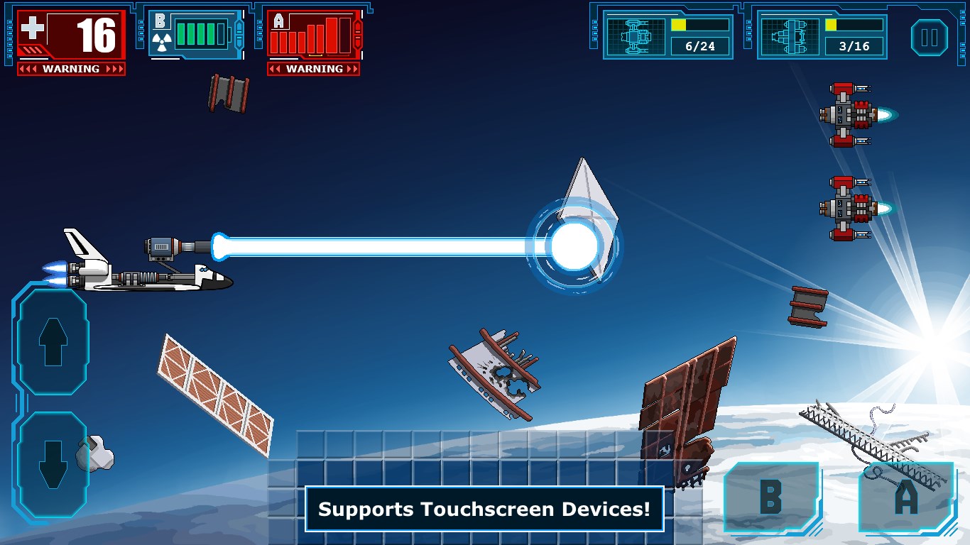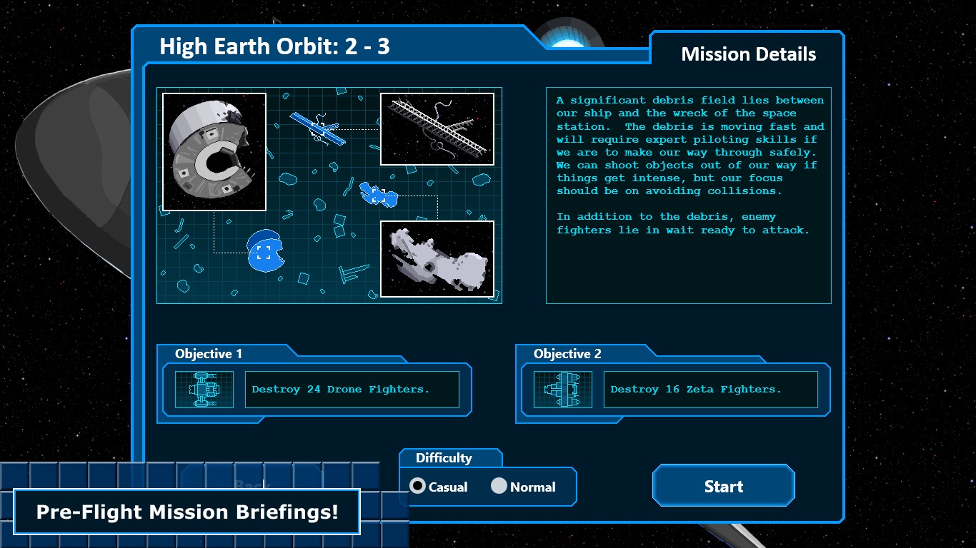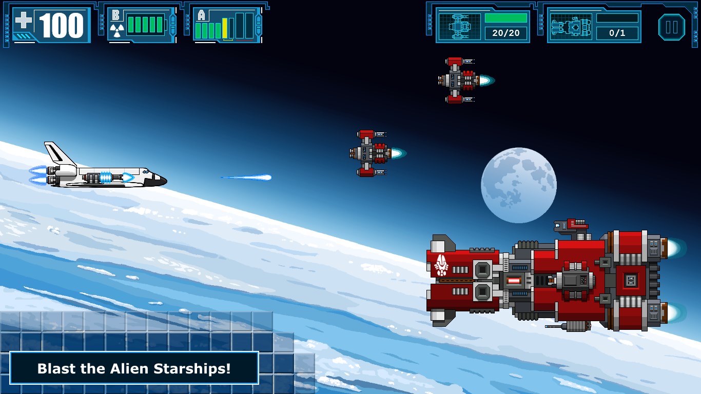 You command Earth’s best hope - a single ship armed with the best technology humanity can offer. Pilot the Space Shuttle Endurance in a 2D side scrolling shoot ‘em up against an alien fleet composed of fighters, frigates, and more. Complete objective based levels as you face deadlier and deadlier challenges. Play using a keyboard or a touch friendly device!