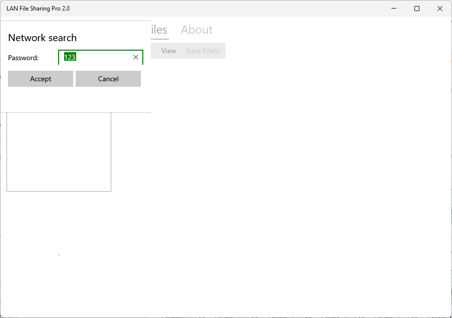 This application only needs a sharing password to share the files. It allows you to share files and folders in a Local Area Network (LAN). To share files, the devices must be connected to a network using a wired or wireless (wi-fi) connection. The devices must be in the same LAN.