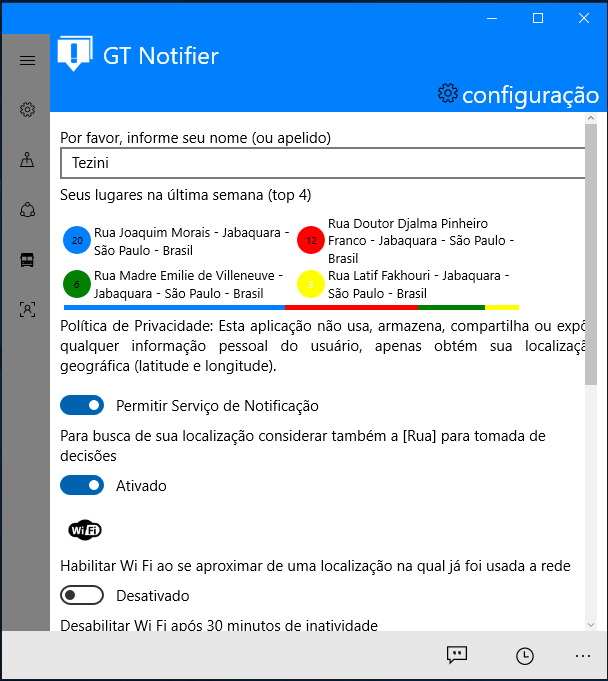 - Every 30 minutes the application saves its geographical position and if you are using a WiFi connection on site. To bypass the stored location the application can warn you if you want to connect your WiFi with a link to the native WiFi setup screen of Windows