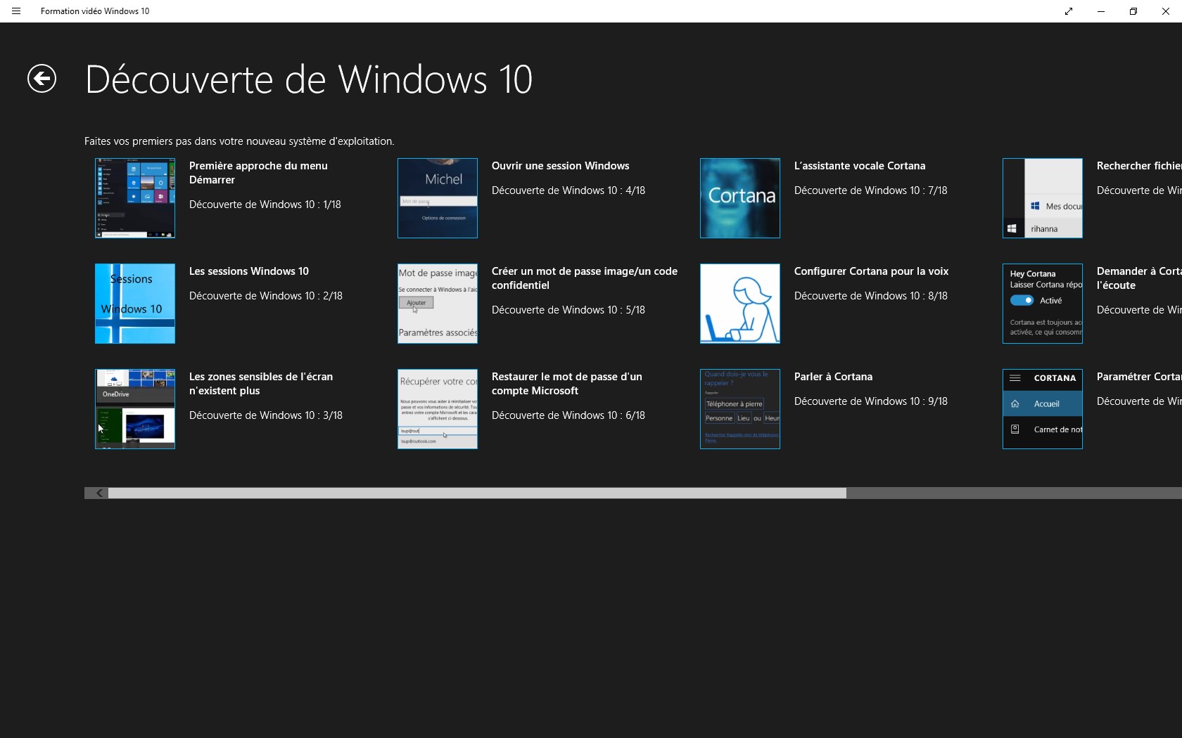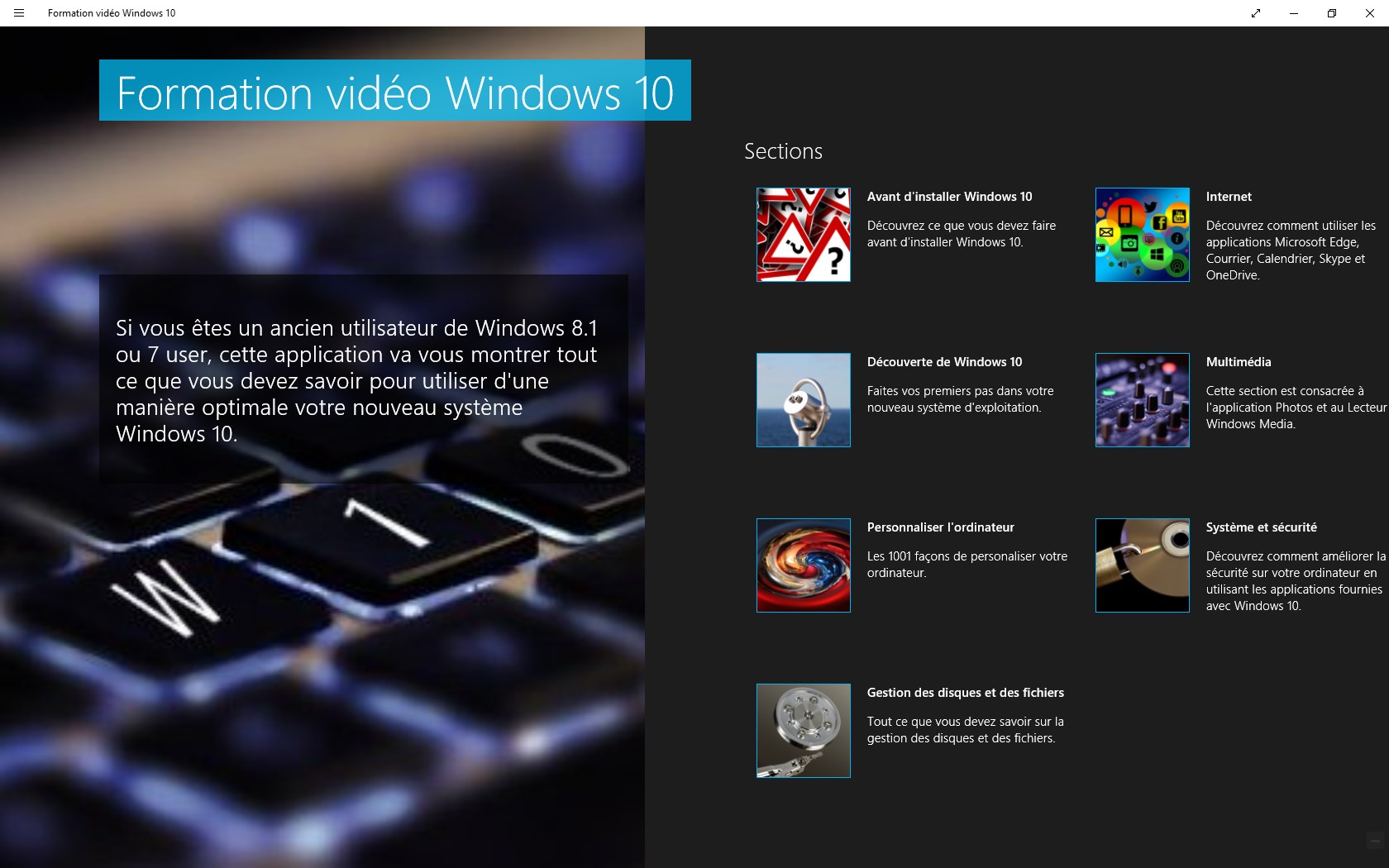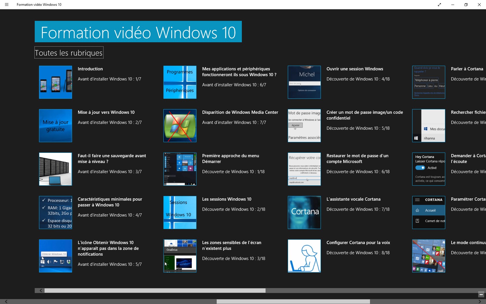 Si vous êtes un ancien utilisateur de Windows 7 ou 8.1, cette app va vous montrer en vidéo tout ce que vous devez savoir pour bien utiliser Windows 10. Découvrez les différentes façons d'installer Windows 10, apprenez à utiliser toutes les possibilités de ce nouveau système, maîtrisez ses nouveautés marquantes (Cortana, bureaux virtuels, le nouveau menu Démarrer, Microsoft Edge, les applications universelles, ...) et beaucoup d'autres choses encore.