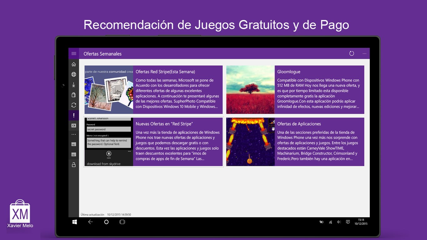 Con esta nueva aplicación podrás ver todas las recomendaciones de las mejores apps y los mejores juegos que hay en la tienda de Windows Phone. Podrás ver algunas ofertas y la descripción de algunas.