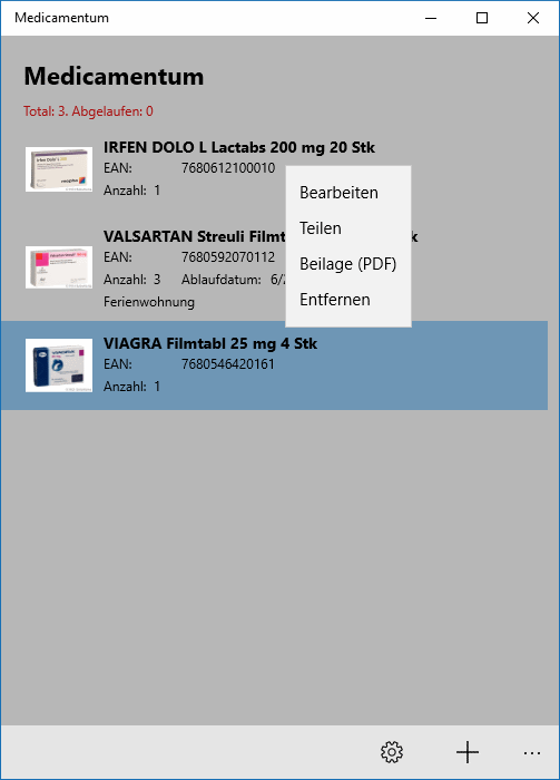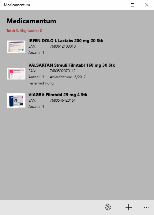 App um den Medikamentenbestand zu verwalten. Datenbank basiert auf den Schweizer Medikamentendaten.