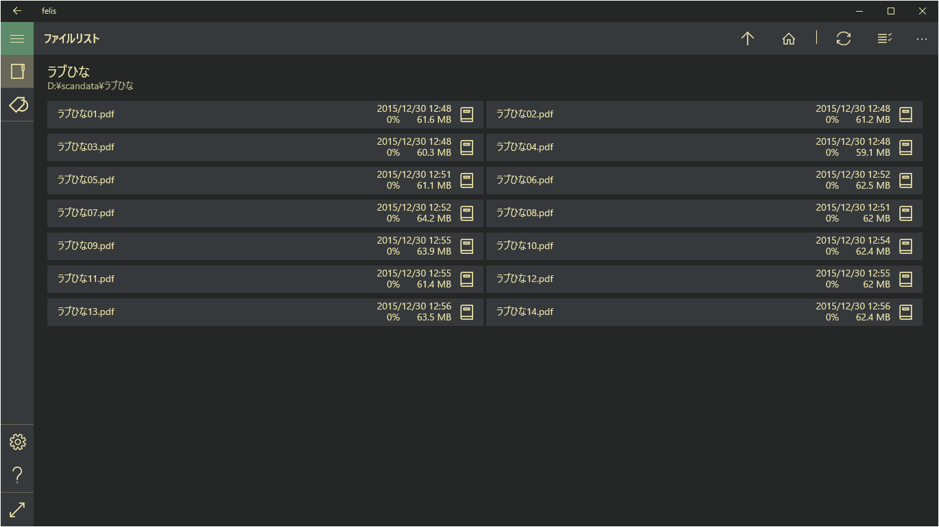 felis は、PDF と ZIP / RAR ファイル内の画像を閲覧するビューアーです。