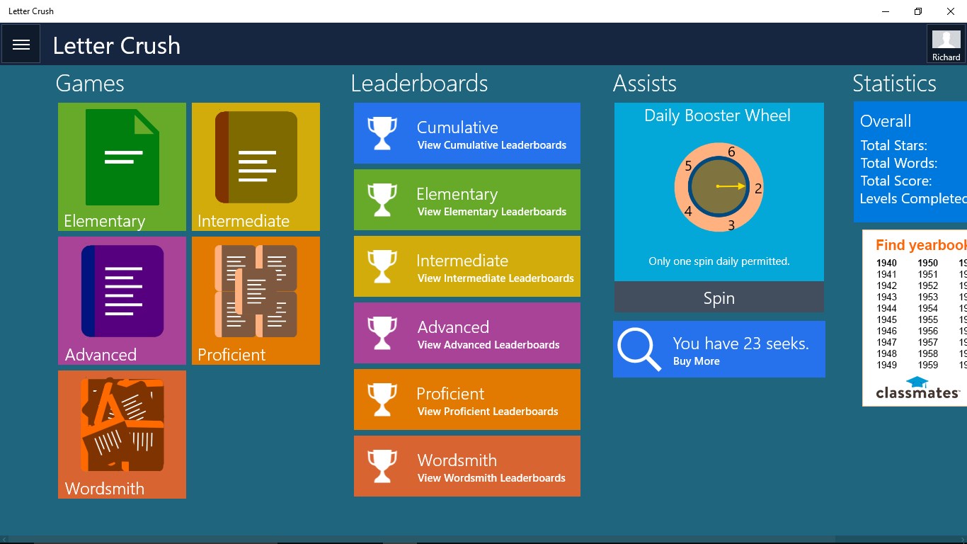 Beautiful graphics and challenging puzzles that will leave you wanting for more.Hundreds of fun levels with varying degree of difficulty.Helpful word seeks to help with challenging levels. Easy and fun to play, challenging to master.Easily sync the game between devices.Leaderboards to watch your friends and competitors!