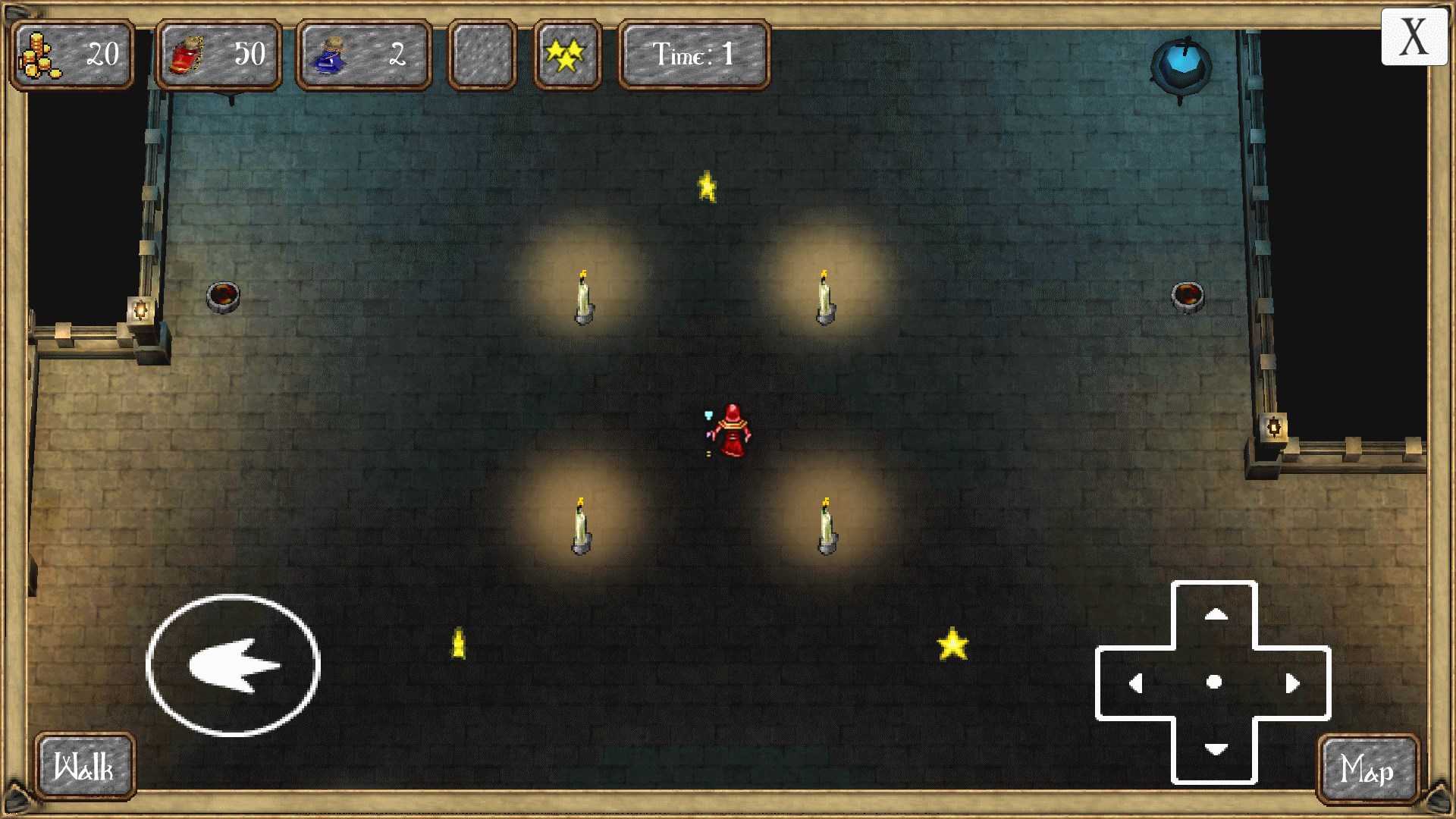 The haunted dungeons are filled with ghosts protecting treatures and tracking your movements. Hide within the candles light or use your magic to battle on. Progress through each level going deeper and deeper collecting or gaining 3 stars.