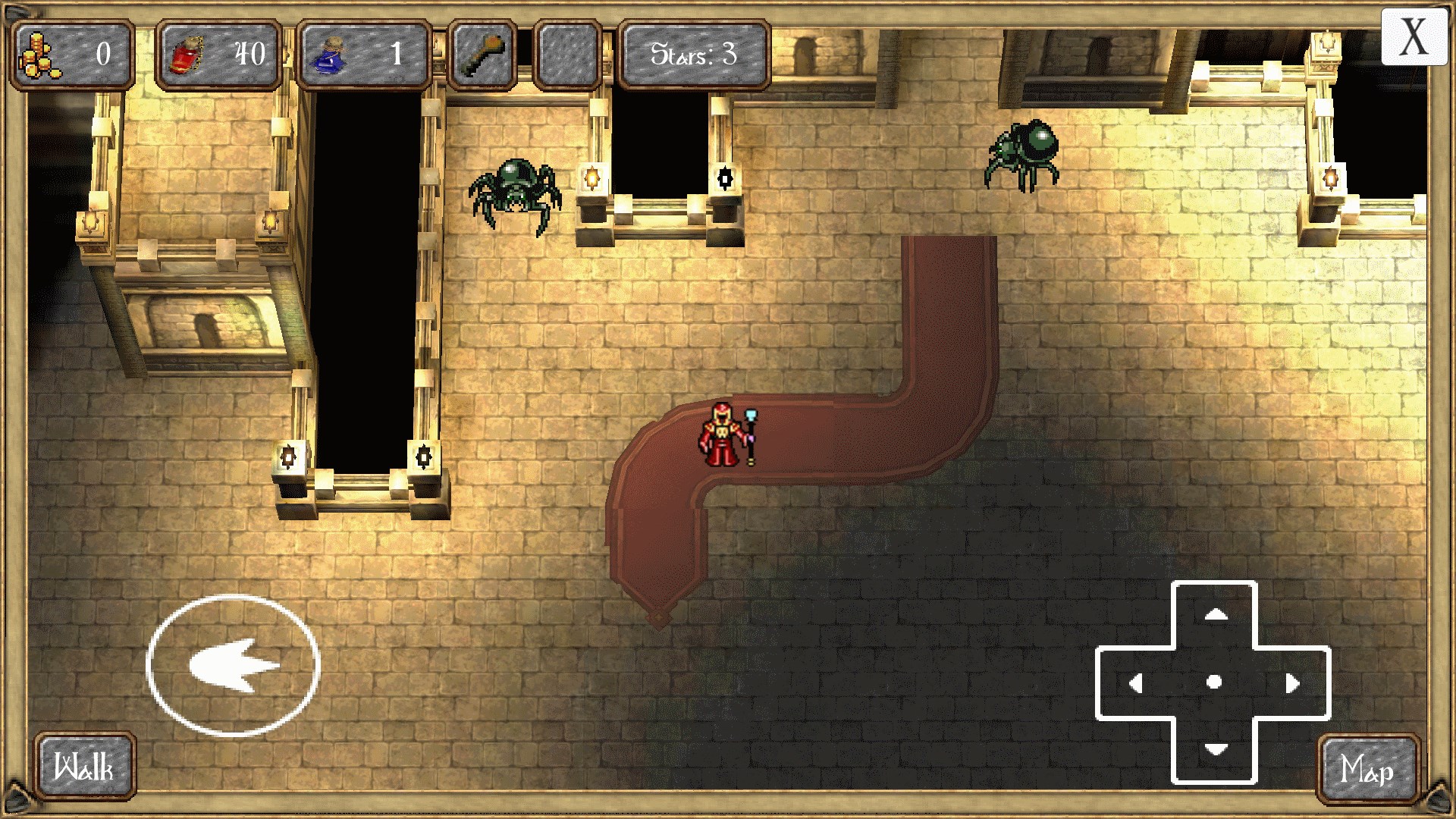 The spooky dungeons can twist and turn. Teleports, doors, gold quests all to challenge you each step of the way.