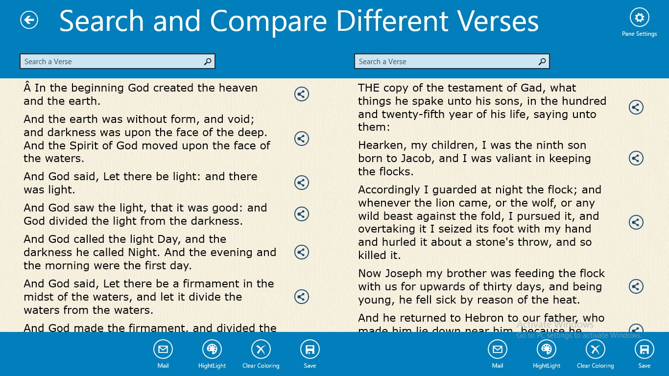 The app has a “split screen” function that allows you to look up 2 verses at a time and read and compare them side by side.