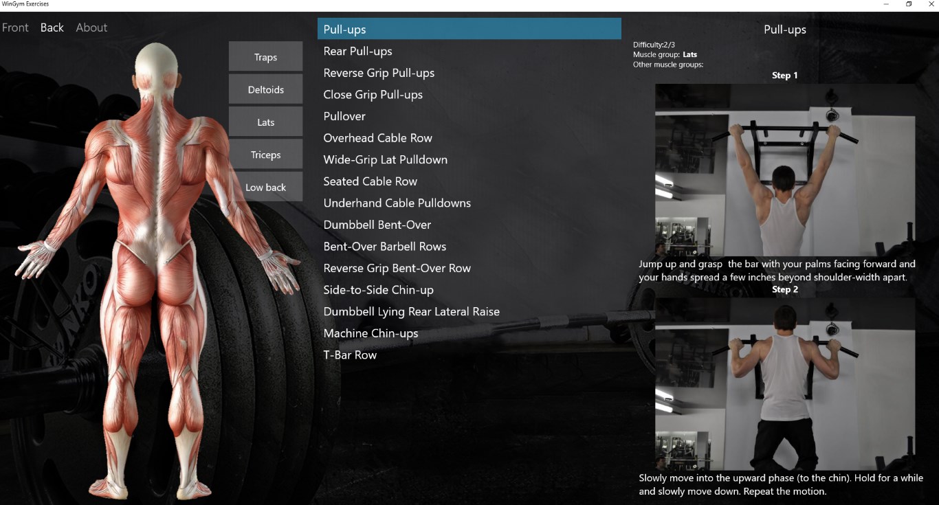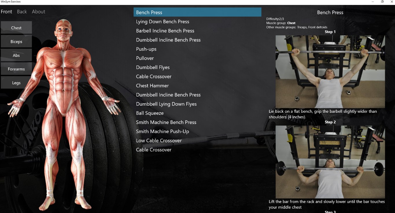 Want to build muscles? To be fit and healthy? We have an option for you! We are glad to introduce our gym exercises handbook app WinGym Exercises, where you will find more than 130 exercises for different muscle groups.