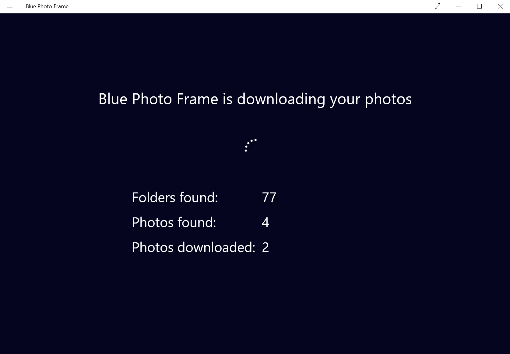Works well with large number of photos in OneDrive. Tested with 100,000+ photos.Photos to be shown are chosen at random.Both online and offline modes are supported.Can be left running for days without impacting performance of the device.Optimized for low end devices with small amount of memory and disk space.
