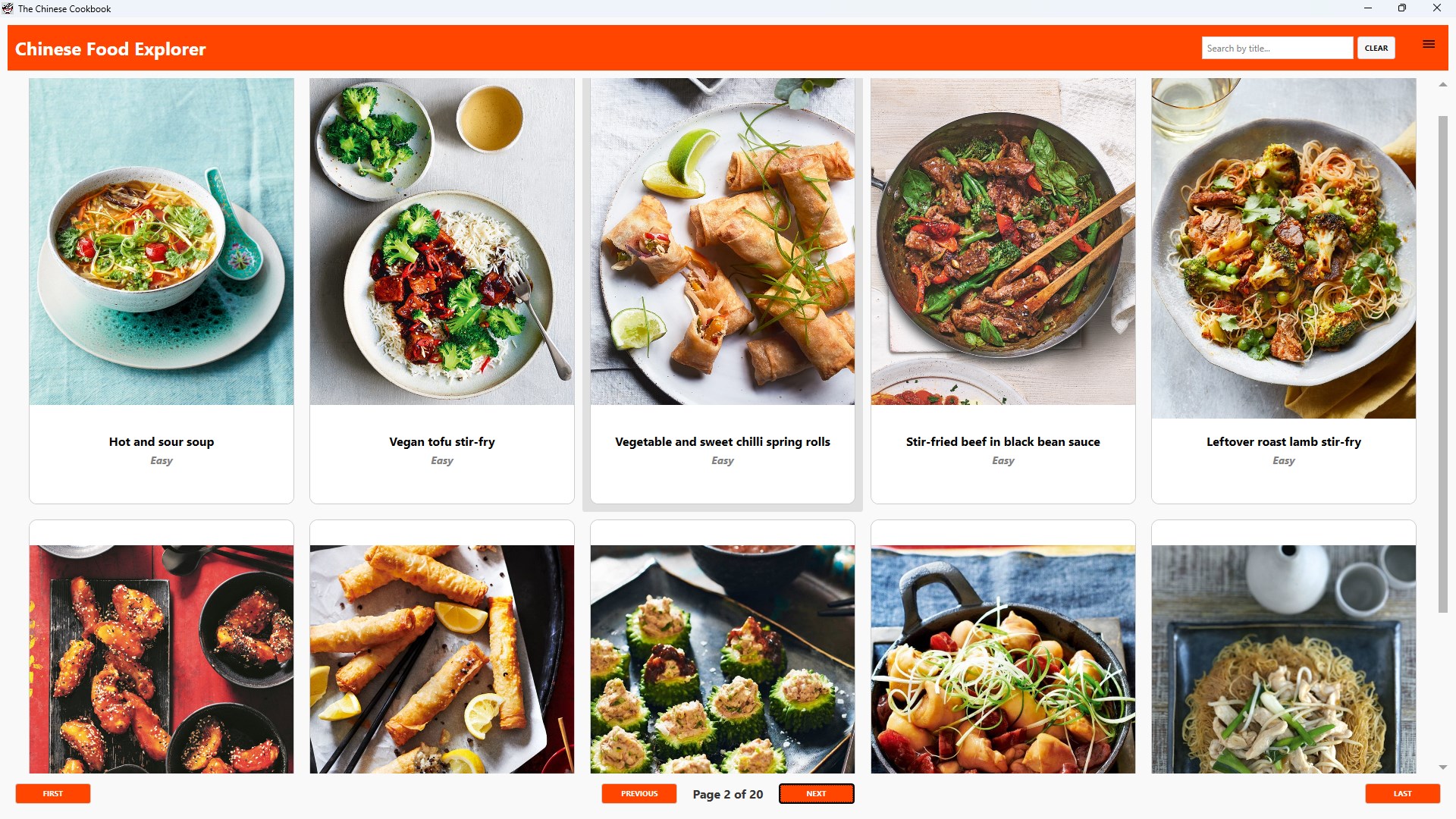 Extensive Recipe Collection: From Sichuan-style spicy dishes to Cantonese dim sum, find recipes for every taste and occasion.Difficulty Levels: Recipes are categorized as Easy, Medium, and Advanced, ensuring something for everyone.Quick Search: Find recipes by ingredients, preparation time, or meal type with the intuitive search bar.Healthy Options: Discover low-fat, vegan, and gluten-free Chinese recipes to suit any dietary need.
