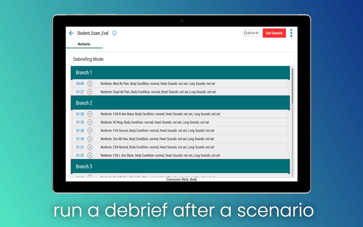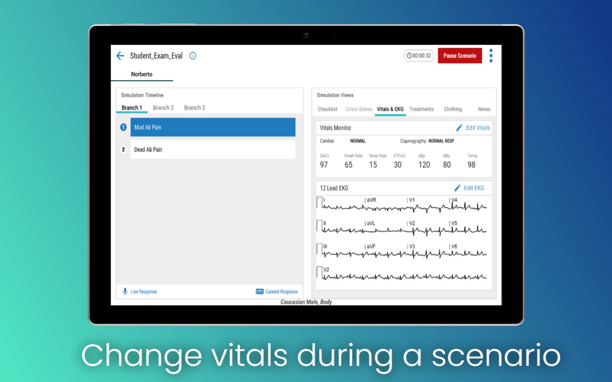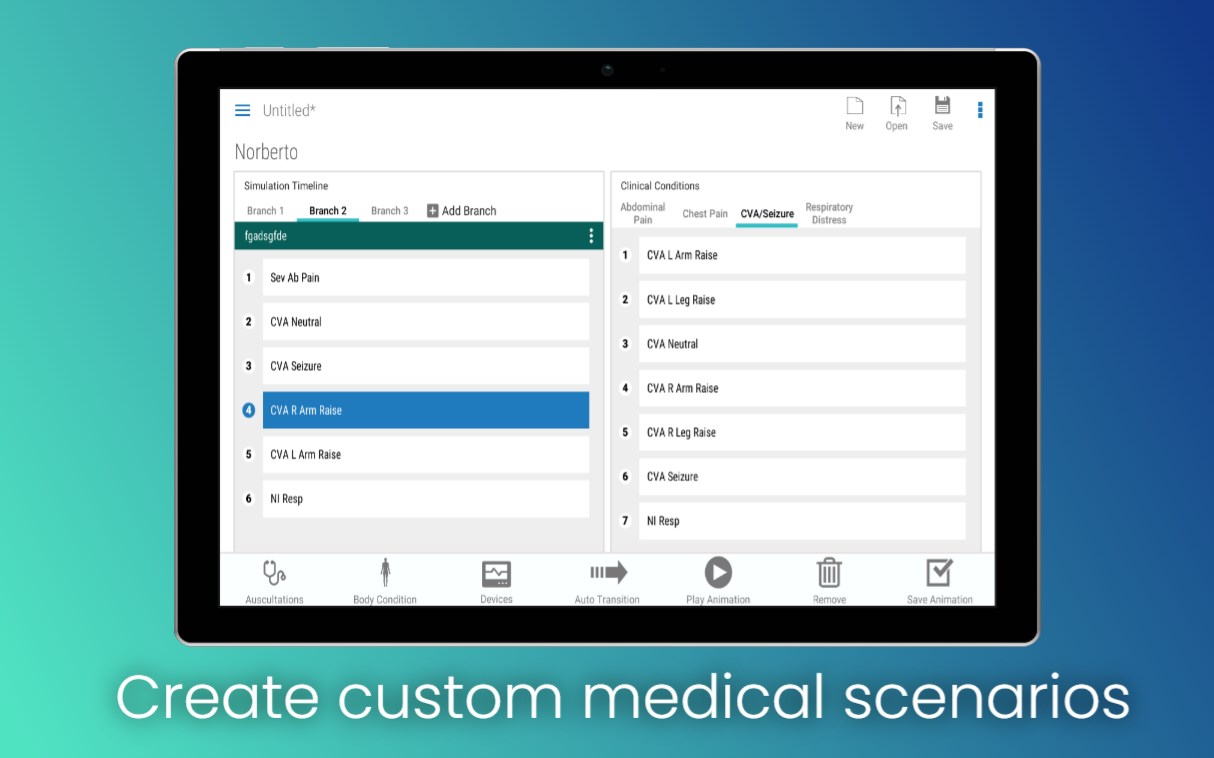 The PerSim® Controller is the easy to use interface for controlling all the functions of PerSim®. This includes logging trainee performance information , Hololens live streaming, applying treatments, connecting the PerSim® Vitals Monitor, speaking for PerSim®, creating thousands of custom scenarios through the user friendly scenario editor, and many more.