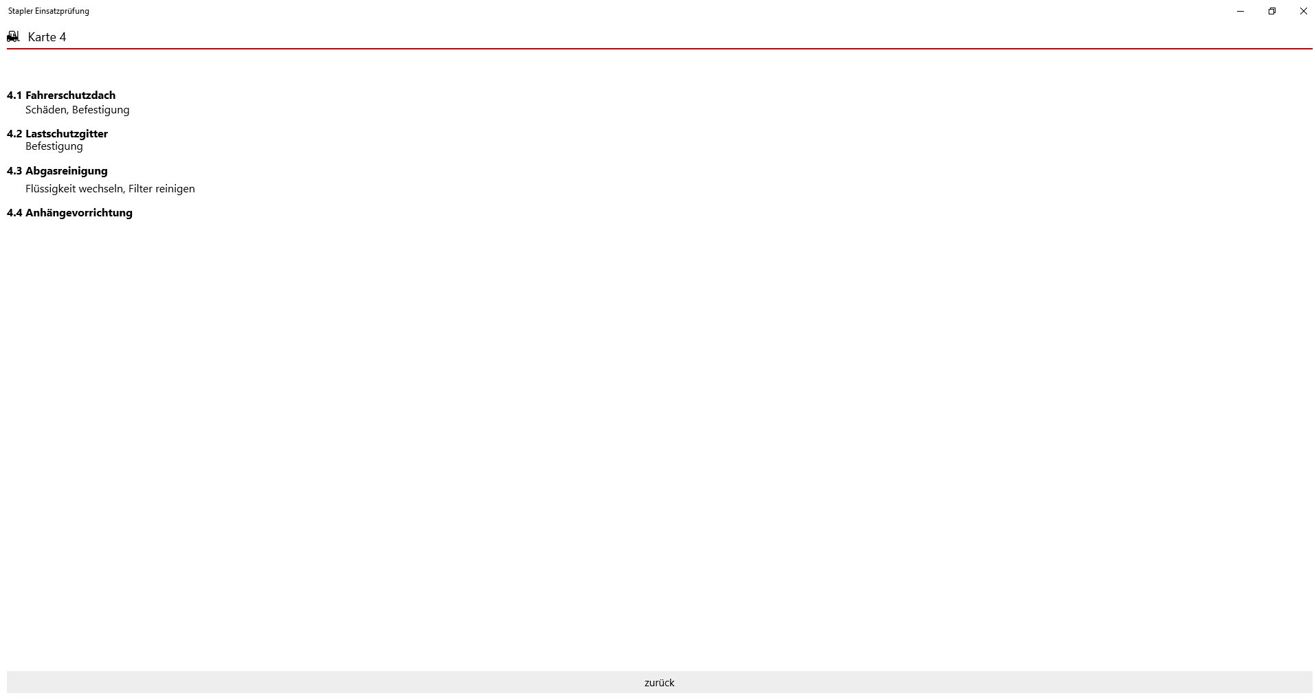 Mit der Stapler Einsatzkontrolle prüfen Sie, ähnlich bei einer Abfahrtskontrolle beim Lkw, den ist zustand Ihres Gabelstaplers. Diese App enthällt die 4x4 Liste zur Ordnungsgemäßen Prüfung.