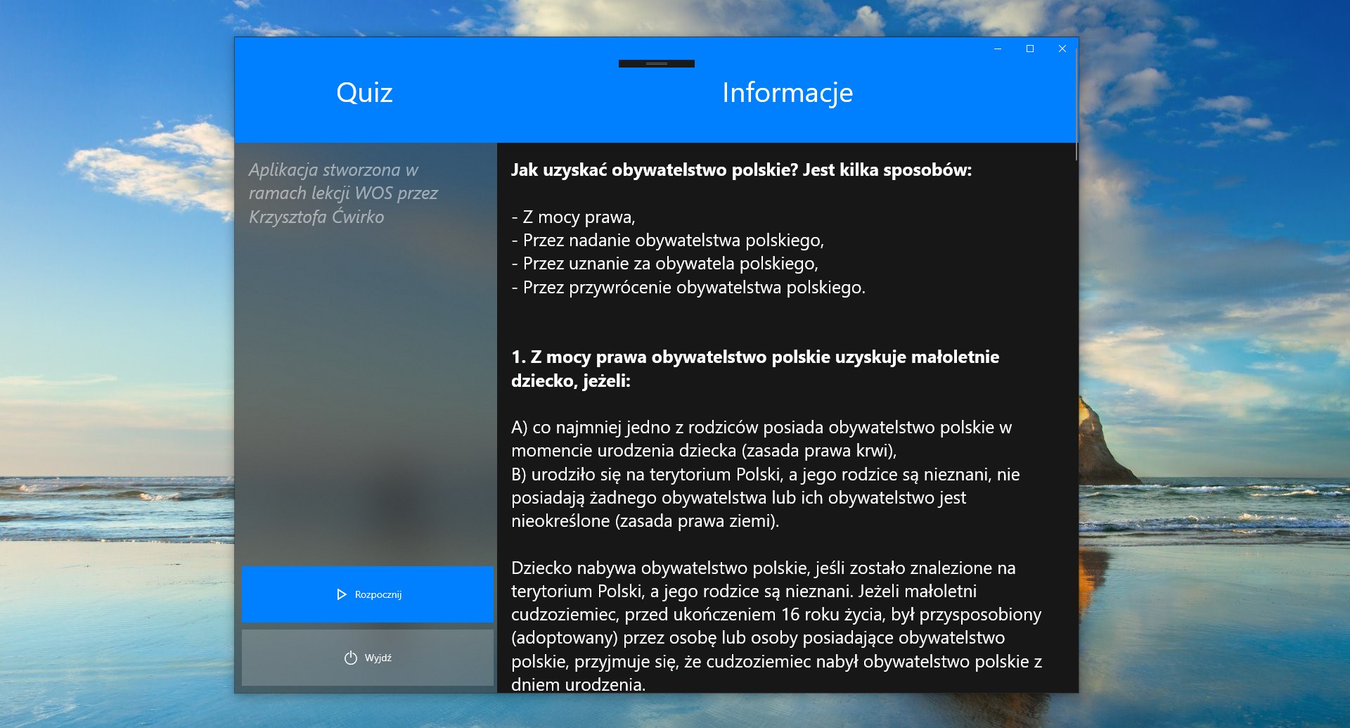 Aplikacja stworzona w ramach WOSu przez Krzysztofa Ćwirko