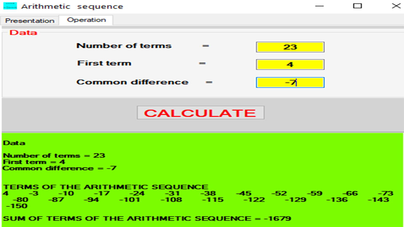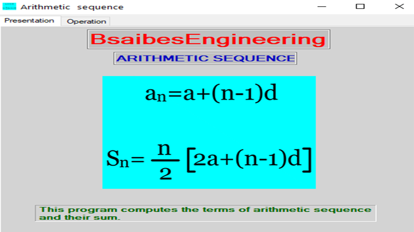 This program computes the terms of arithmetic sequence