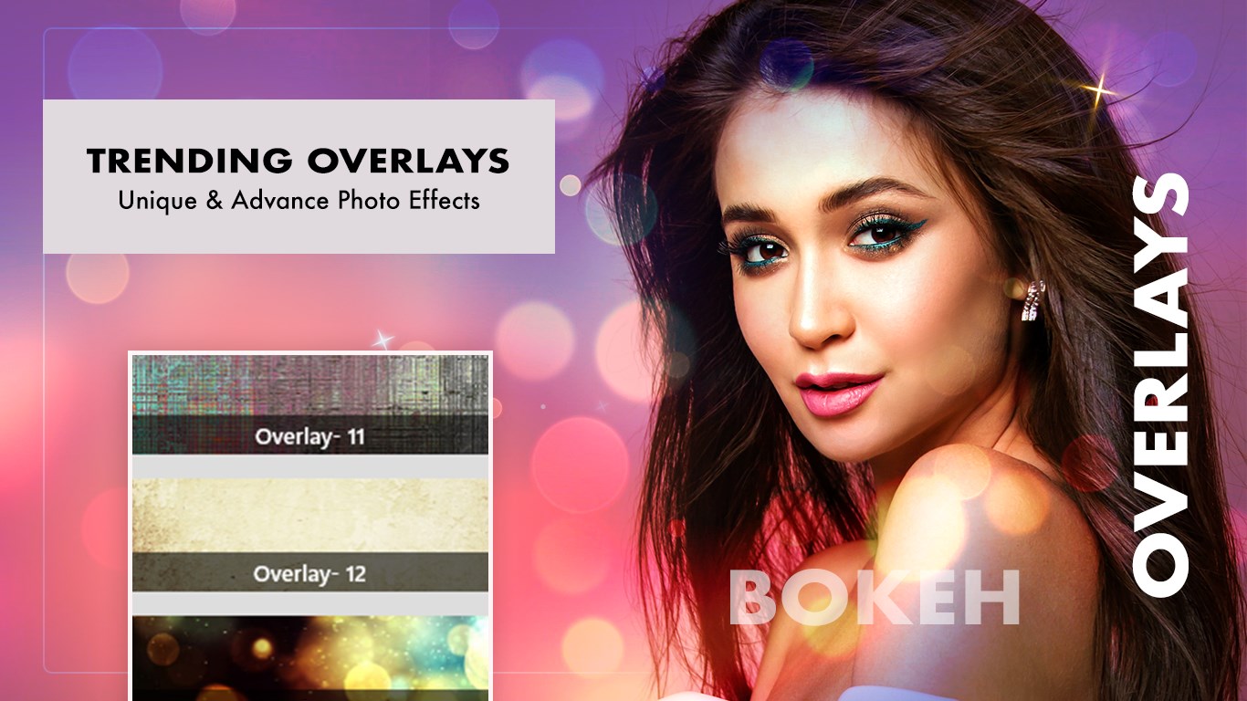 • Impress your friends by applying a collection of hundreds (and growing) of shapes, Borders, fall leaves, overlays, rain, pattern, scratches, winter-snow, light-leaks, and more to add that extra flair to your photos.
