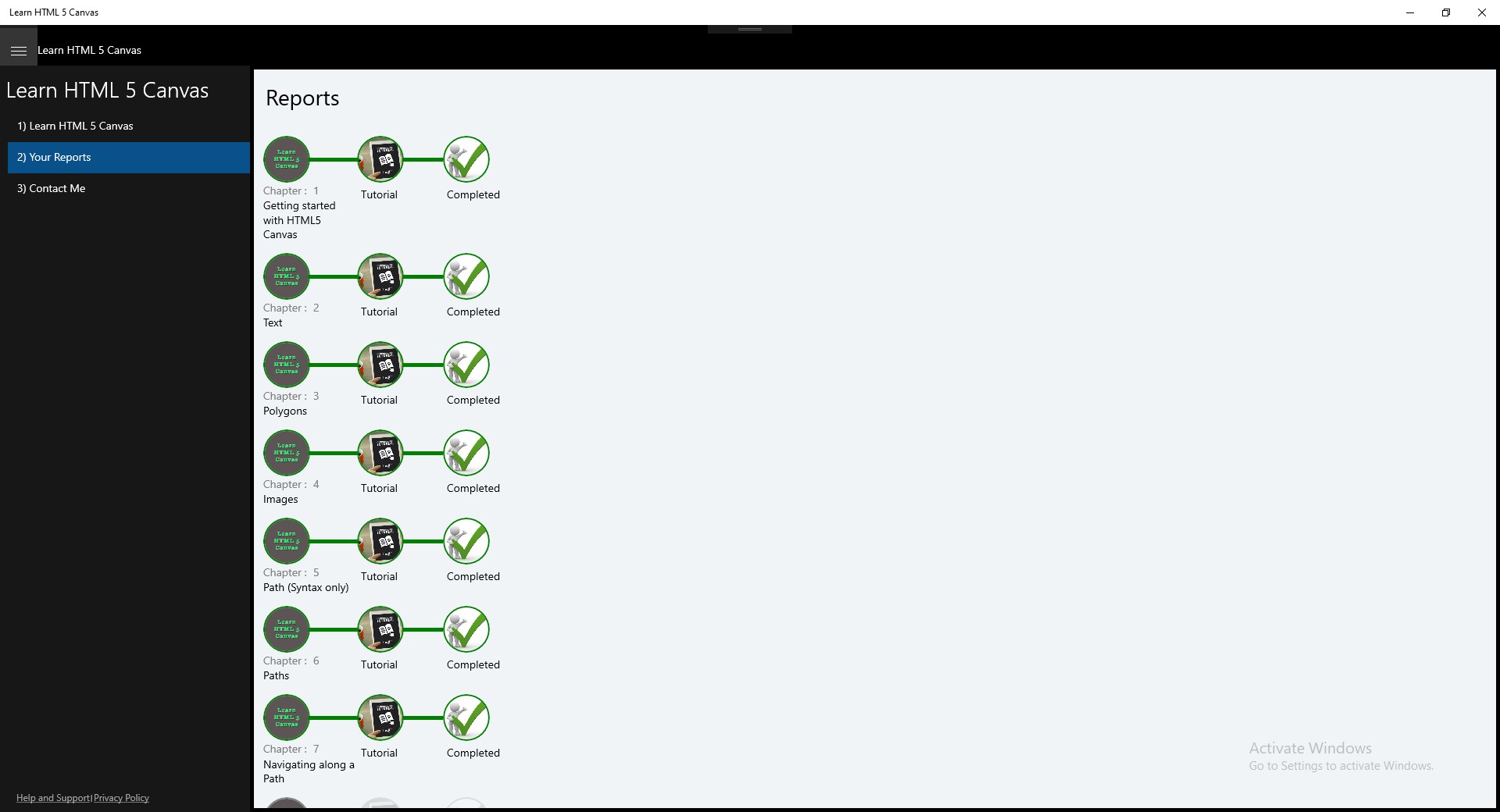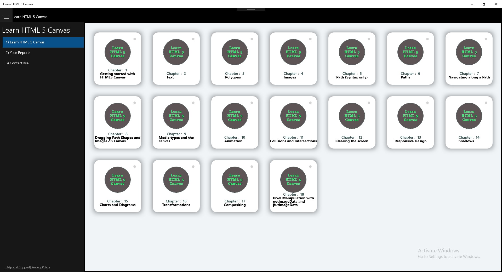 This app contains tutorials and reports for the all who want to Learn HTML5 Canvas.