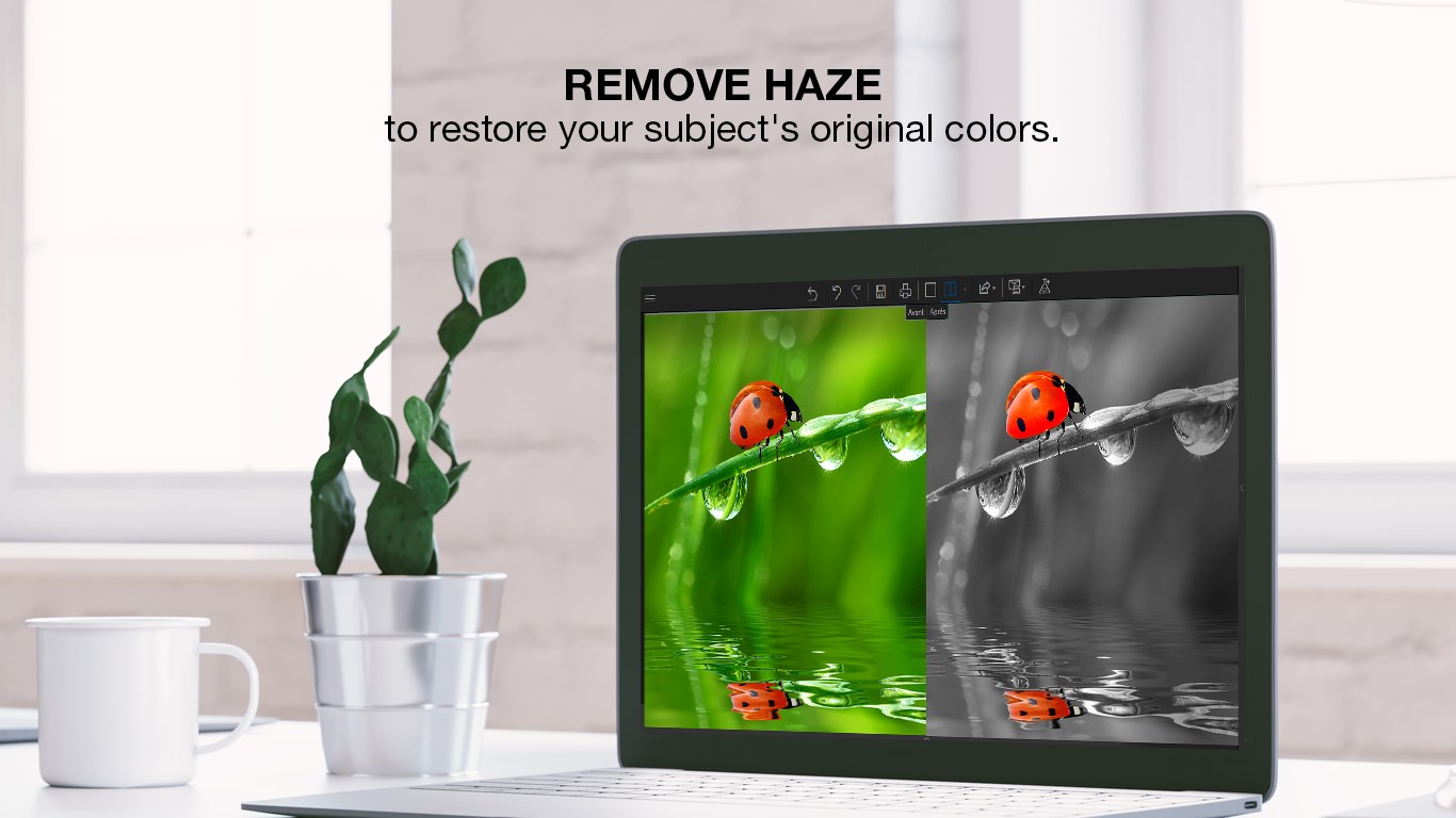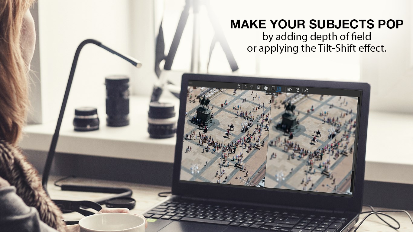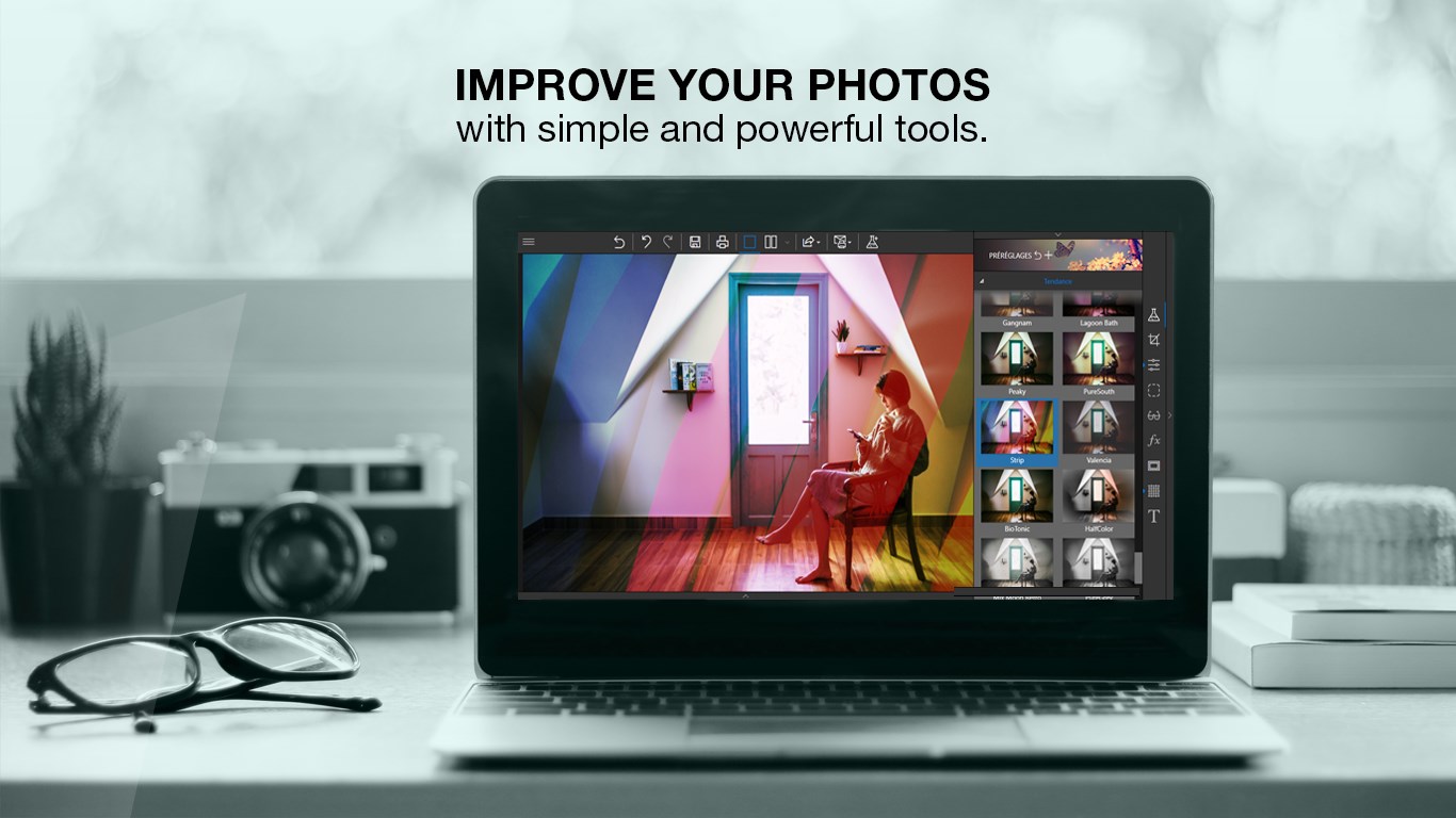 Use classic frames, design frames, coloured or fun frames to create unique pieces of art!Filters & effects like vintage, black & white, seasons, old film, cinematic, and much more!Blur tool Includes Tilt-Shift & Artistic Blur effects that bring the subject of the photo to life!Textures can be used to add amazing overlaysTone Curve – used to brighten or darken tones in your imageVignetting – Create professional looking photos with oval framesBatch Mode – apply changes to a several photos at onceSave personal presets that can be used in a single click for future projects120 Filters & Effects+110 Frames+60 TexturesRemove haze – atmospheric haze or fog – from your photos very easily and gradually.Retouch like a pro with local retouching. Alter the exposure, the luminosity, the contrast, etc. of specific areas of your photos.