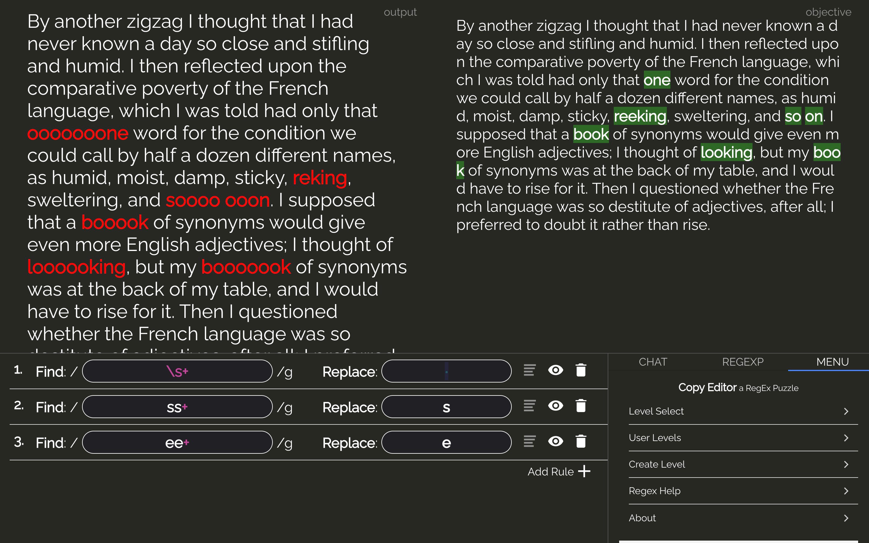 Whether you are new to using Regular Expressions or want to test your proficiency, Copy Editor promises a fun and challenging puzzle experience.
