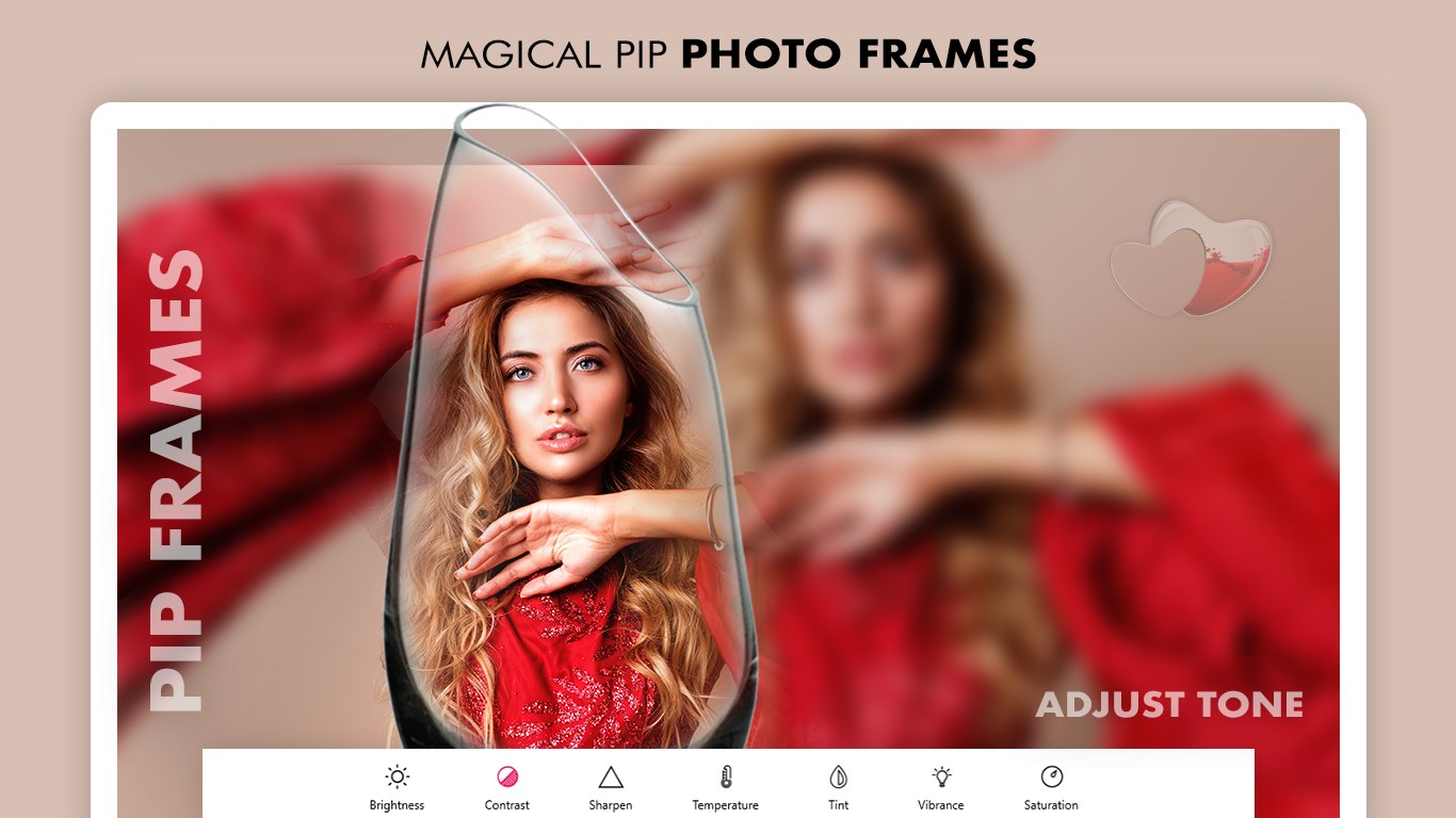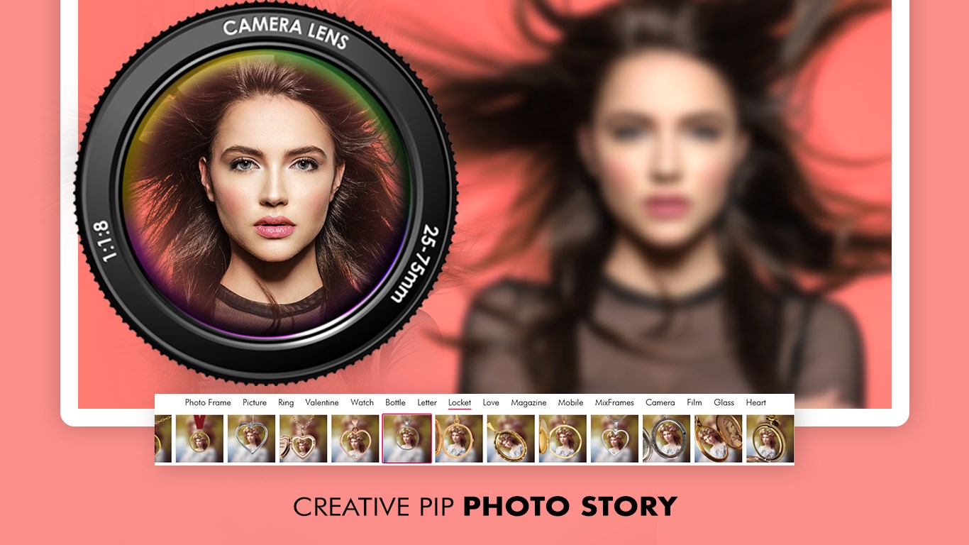 PIP CAM is a pic-in-pic frame collage maker with powerful makeup, amazing filter effects and cute stickers. It allows you to combine blurred photos in glass, hand, camera, board and more.