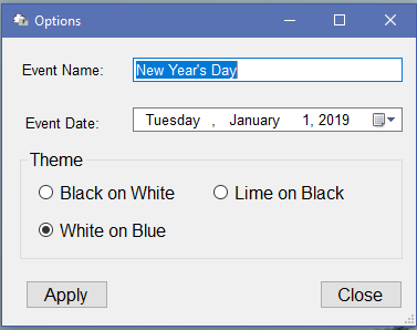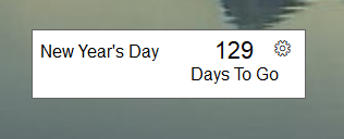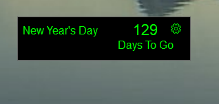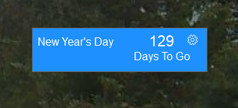 A simple countdown app. No bells or whistles...just a countdown until a chosen day. No alarms or notifications. Displays as a widget on your desktop that can be moved. The app position is saved upon exit.