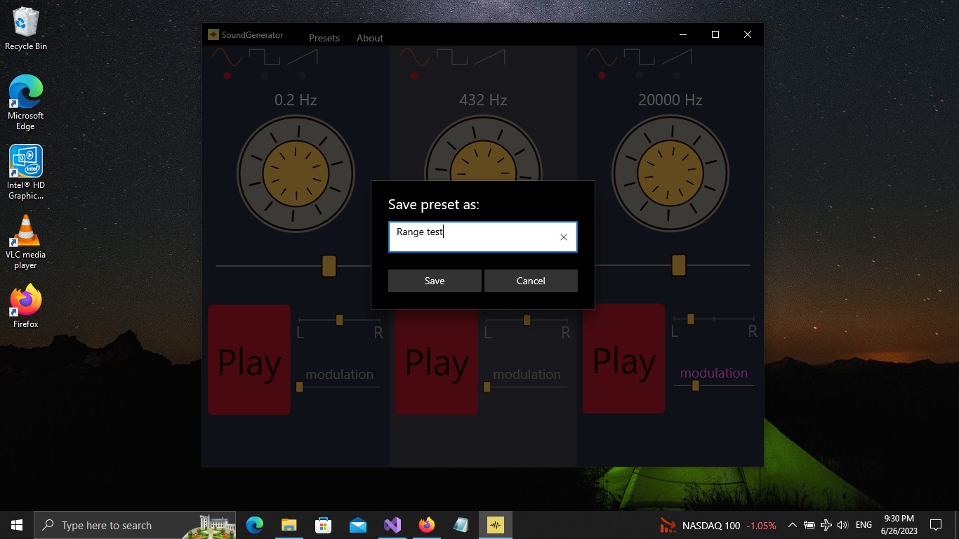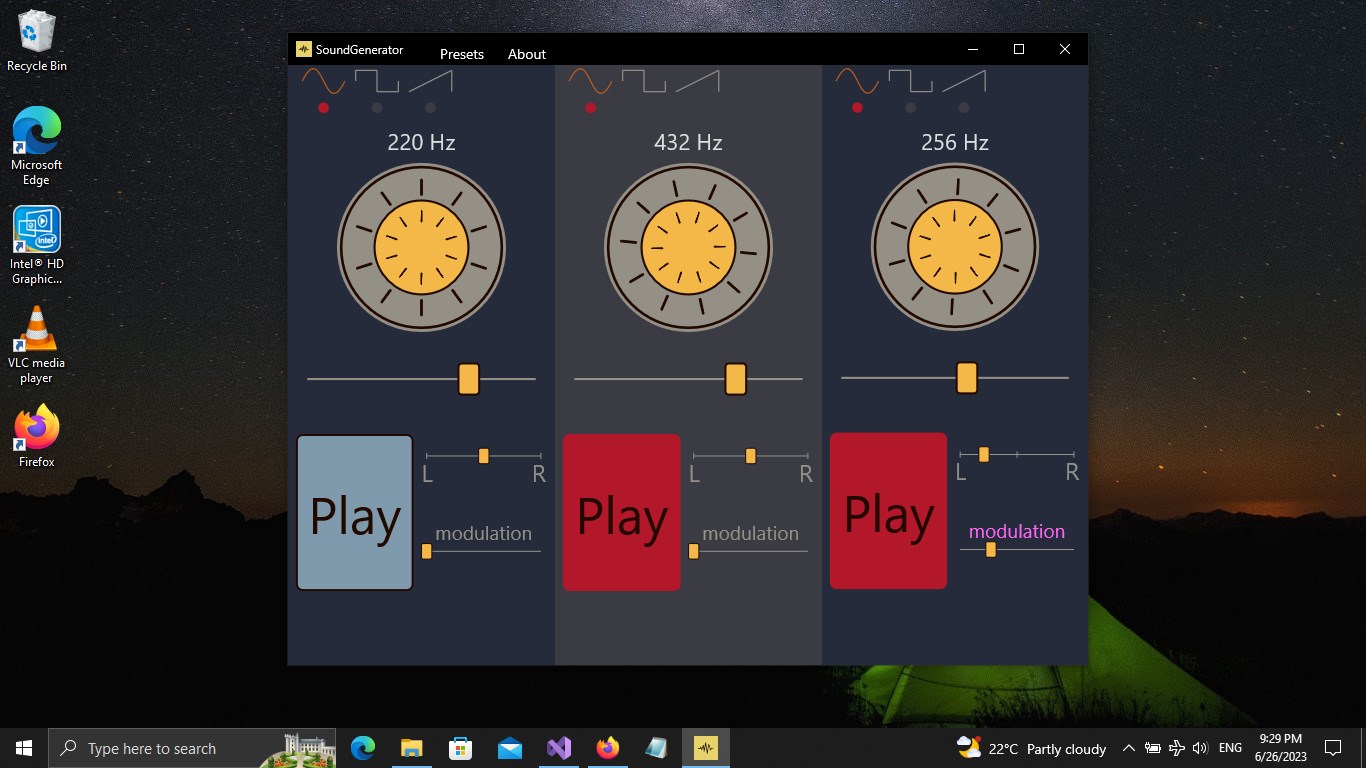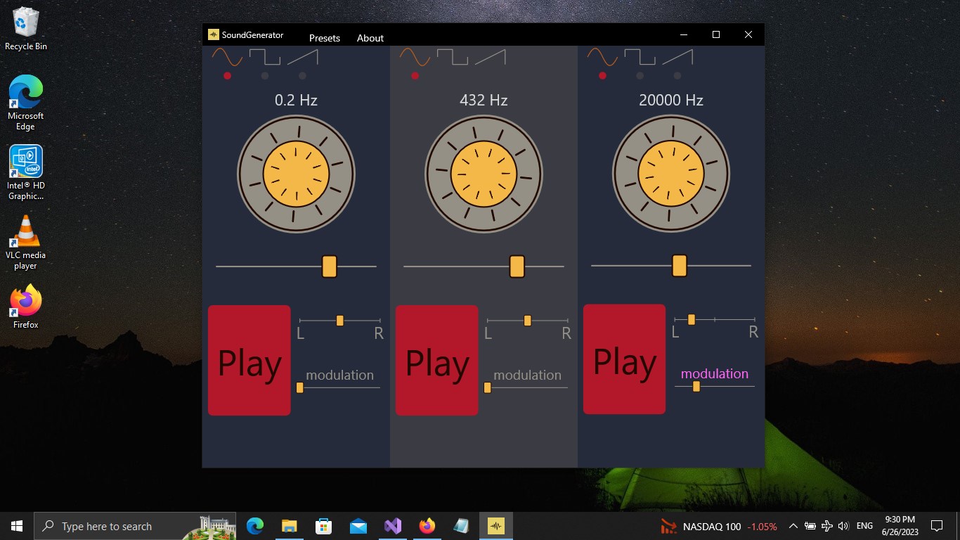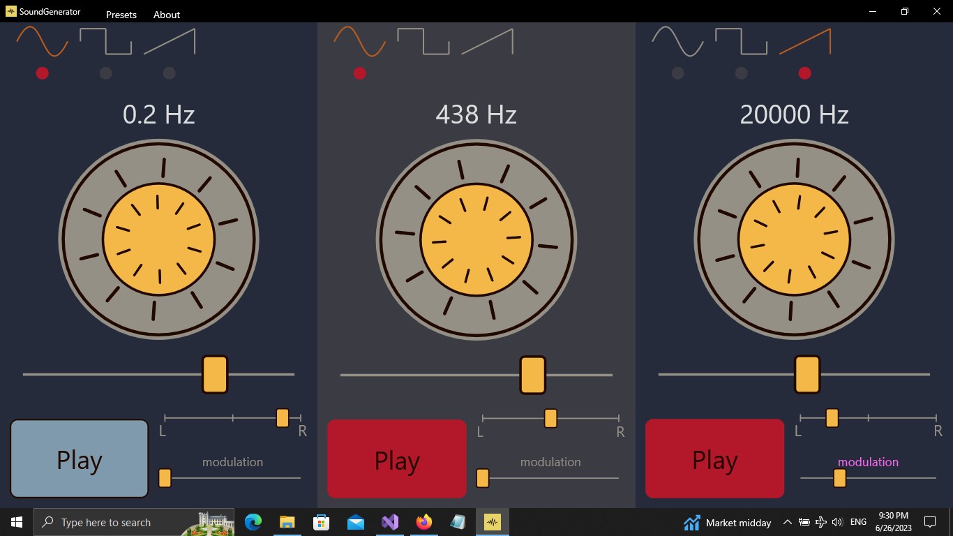 Frequency Sound Generator is a simple wave form sound generator and oscillator. It is easy to use tool so you can create high variety of sounds and signals in just few seconds.